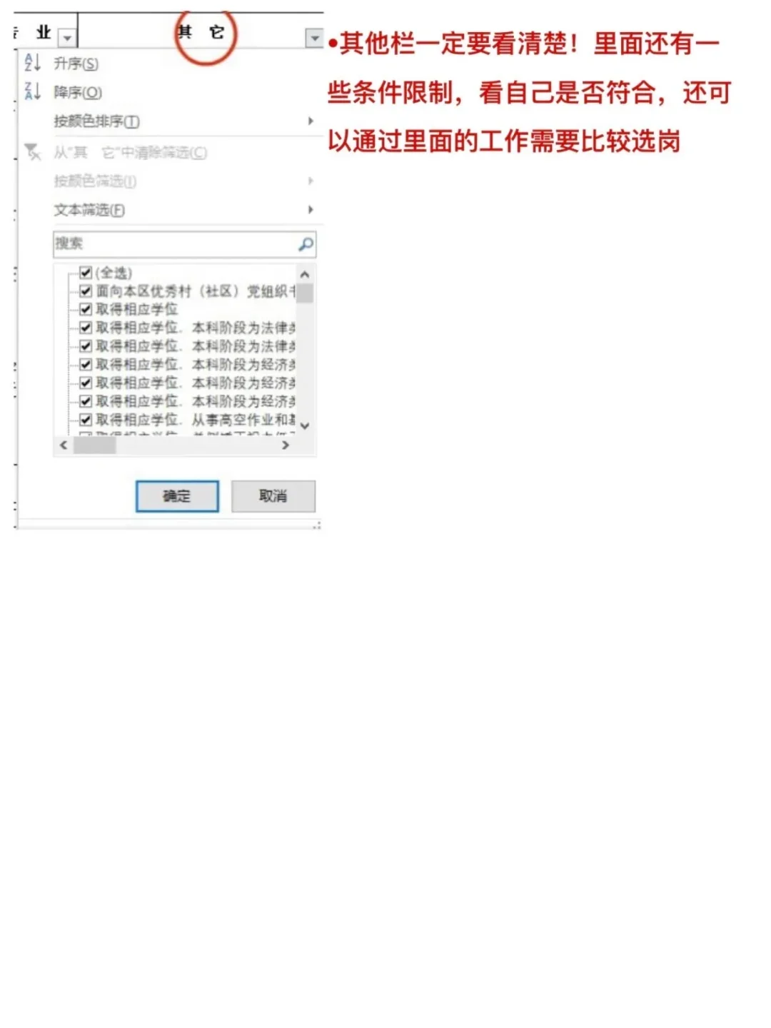 5、优选限制条件多的,条件越多报考人数越少,上岸机会越大