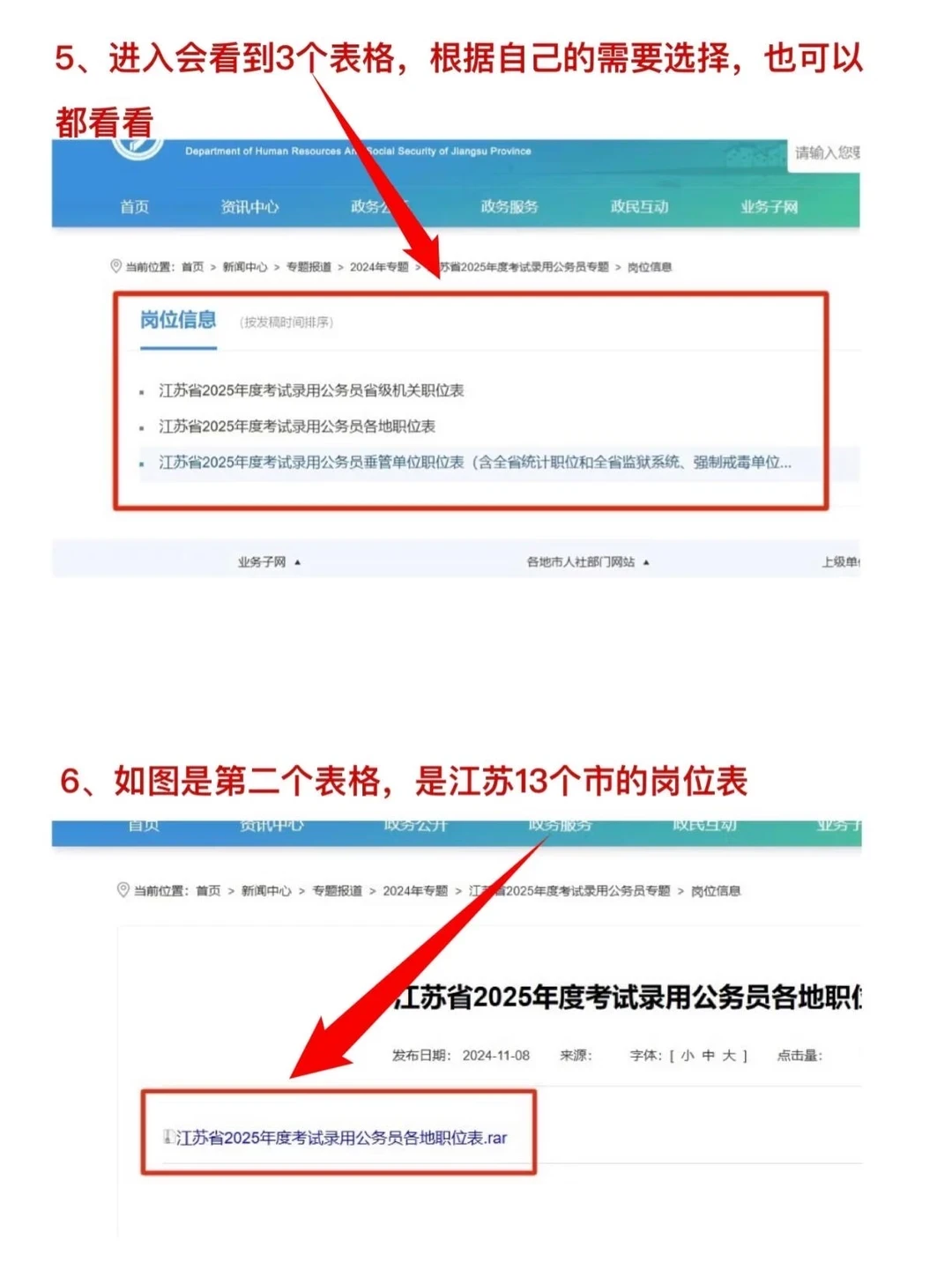 1、首先搜索江苏省人事考试网,点开后直接在检索搜:“考试录用公务员专题”,找到了到 “岗位信息”可以看到三个表格