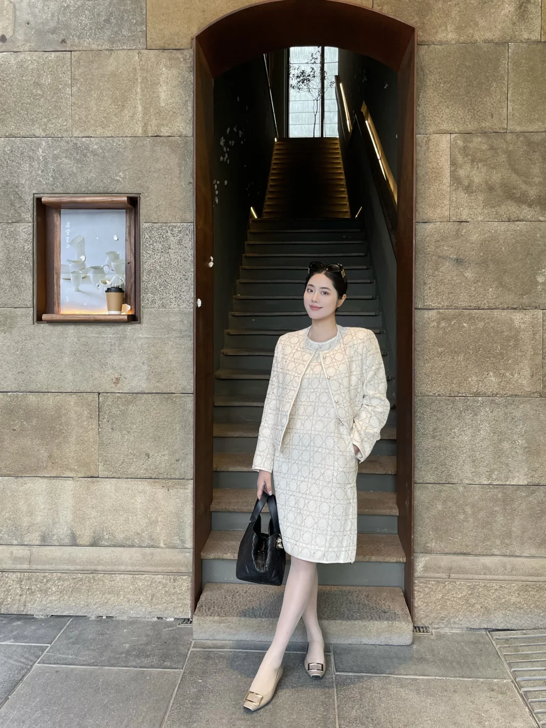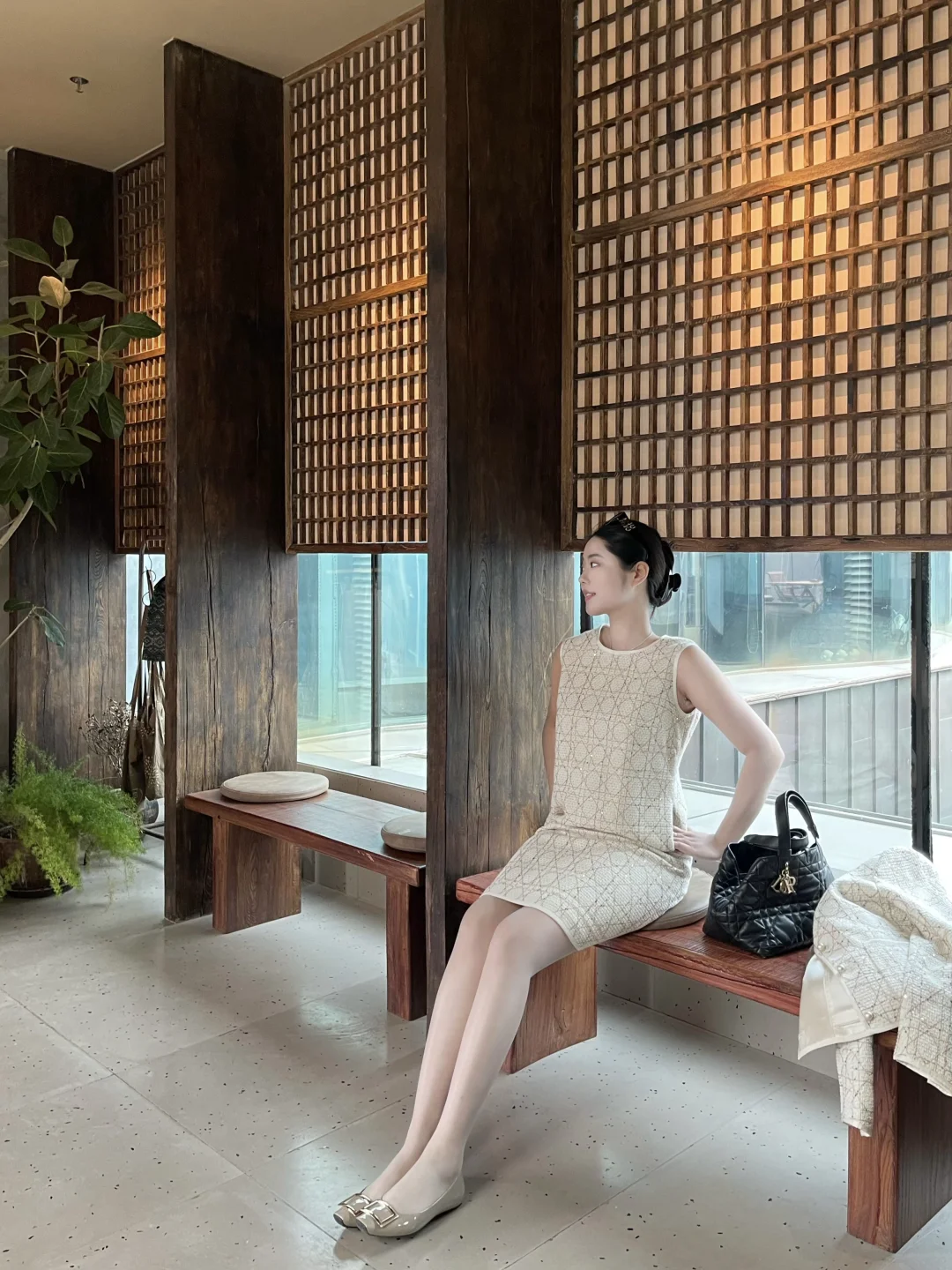慵懒午后,浅紫色内衣搭配米色外套,舒适自在。