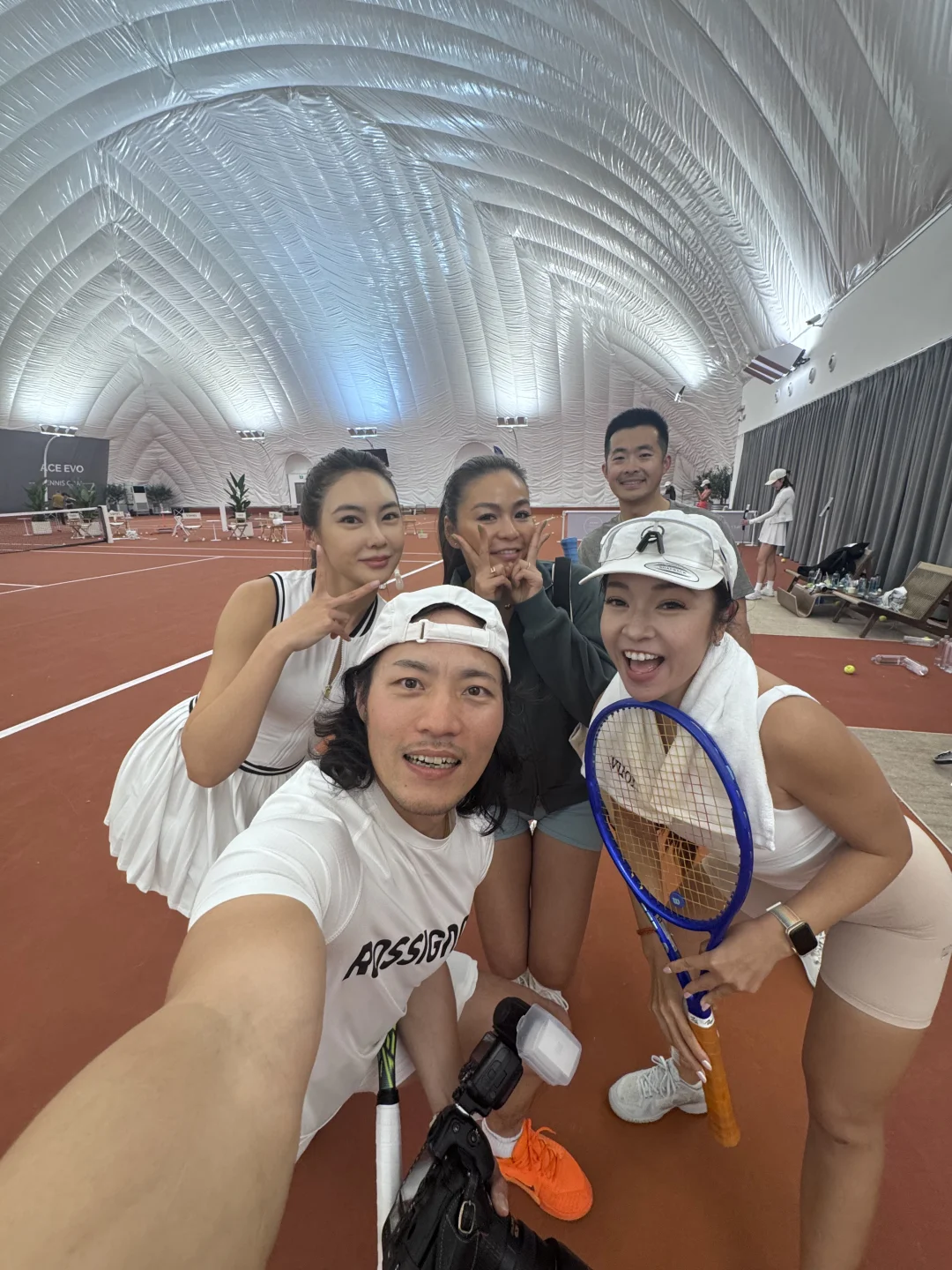 现场真的全上海好看的网球人都来了,大家在球场上挥汗,在场外边品茶歇边聊天,那种健康又松弛的氛围,大概就是Vuori想传递的吧——运动不是一种标签,是一种生活状态。