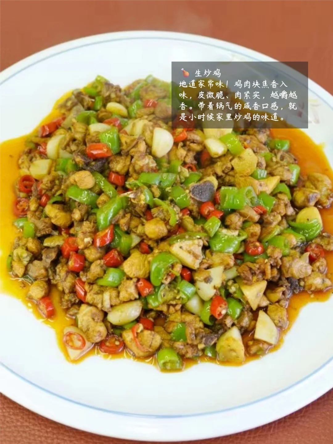 •生炒鸡:焦香入味,皮脆肉实,是小时候家里炒鸡的味道