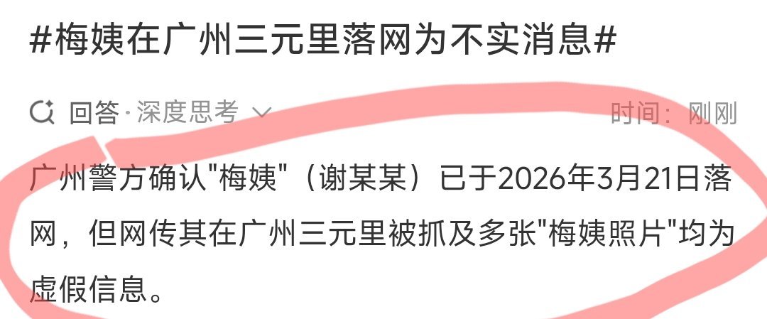梅姨在广州三元里落网为不实消息梅姨已经落网了,不过不是在广州三元里落网的,就是这