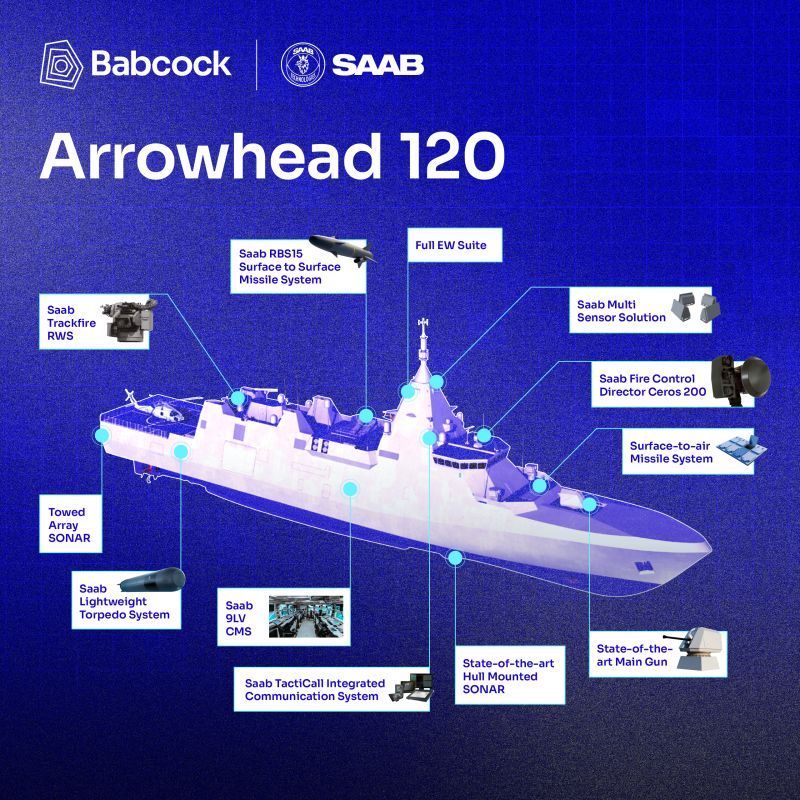 中外舰闻 每天认识一件兵器 烽火问鼎计划 显然Saab和Babcock推给瑞典🇸🇪皇家海军的AH-120导弹护卫舰(图1,传送门👉网页链接)是有垂发(VLS)的(图2)。