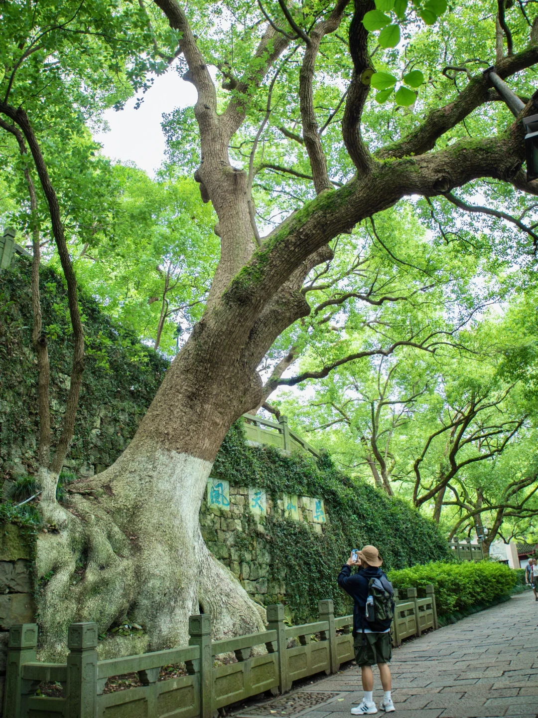 3⃣️吴山大观:参天古树从台阶下伸出,彰显生命力,边上有“吴山天风”四个字,参考图几7。