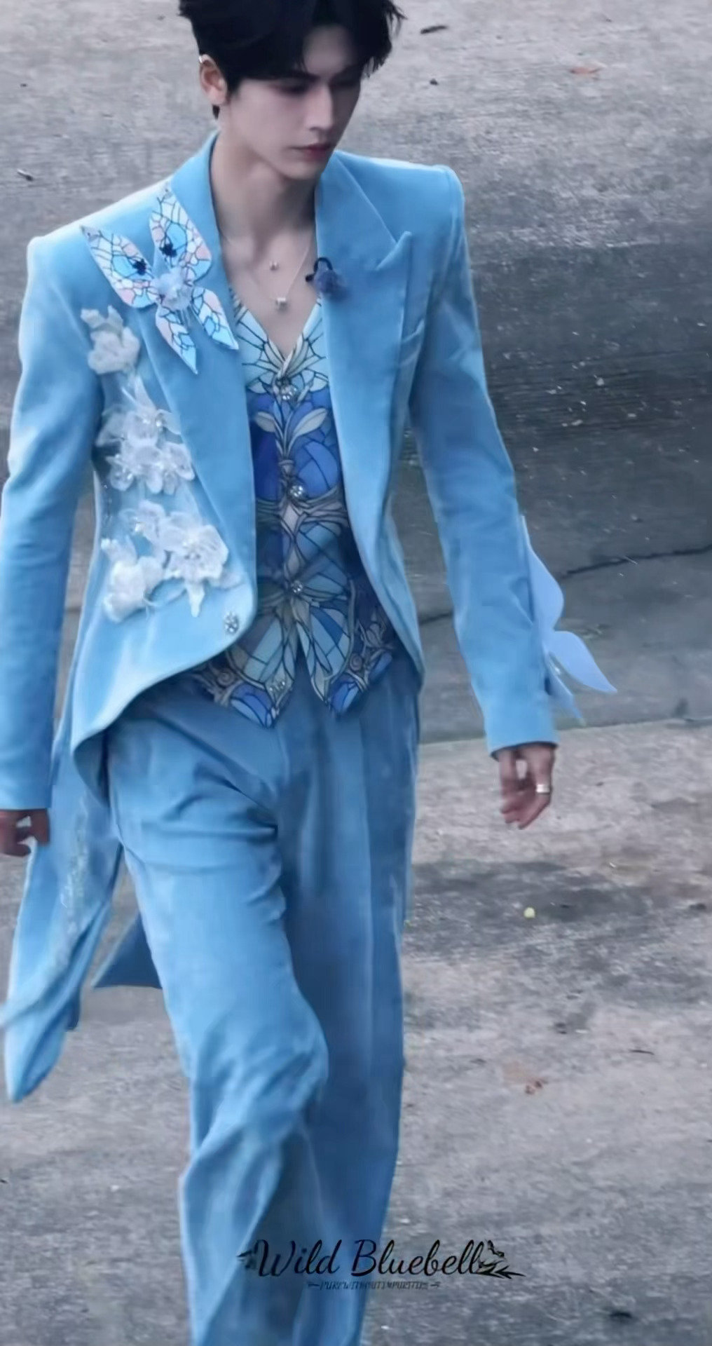 张凌赫蓝色花蝴蝶造型张凌赫比例太好了