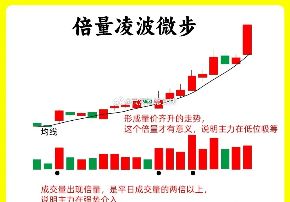 注意了!主力在底部吸筹、洗盘以后常常会出现这三种形态。虽然形态上看不一样,但是形态背后的都是底部放量加主力控盘。所以我们在看形态的时候,重要在于背后的逻辑还是老规矩,点赞收藏或评论六六六支持一下,女侠每天分享炒股干货,以免以后想温习找不到了一、倍量凌波微步股价经过长时间的下跌以后,开始不创新低,短期均线开始斜率向上,出现多头趋势。成交量出现倍量,是平日量能的两倍以上,K线一般是中大阳线,股价突破上方压力位以后,并没有出现跌破支撑。而是一个台阶一个台阶向上,盘整的时候成交量出现缩量。这是主力吸筹和控盘。这个形态的重要在于,股价位置,成交量放量和回调缩量,并得到有效支撑二、蜻蜓三点水股价经过长时间的下跌以后,股价出现连续三次以上的探底,三根以上的带有下影线K线,可以阴线、阳线或是十字星。但是下影线的是比较长的,一般是实体部分的两倍以上。整个低点是不断抬高的。前面两次的探底,成交量并没有出现放量,第三次探底出现放量,说明开始的抛压比较小,等到最后一次出现探底,,说明抛压已经枯竭,所以多方才出现放量。三、涨停二踢脚也是我们常说的涨停双响炮。股价在低位出现涨停板,突破上方的压力位,这个首板涨停。次日股价开始缩量洗盘,洗盘的时间并不长,也不能太短,一般3到7天左右,成交量开始缩量,回调阶段,股价都没有跌破首板涨停的一半位置。等股价再次出现涨停板,突破首板涨停的最高价的,说明主力洗盘结束。这三个形态都是主力的吸筹洗盘形态。成交量必须是放量真实、回调缩量、突破再放量。如果是在高位出现,那就要小心了。如果还有什么问题,可以留言告诉我。