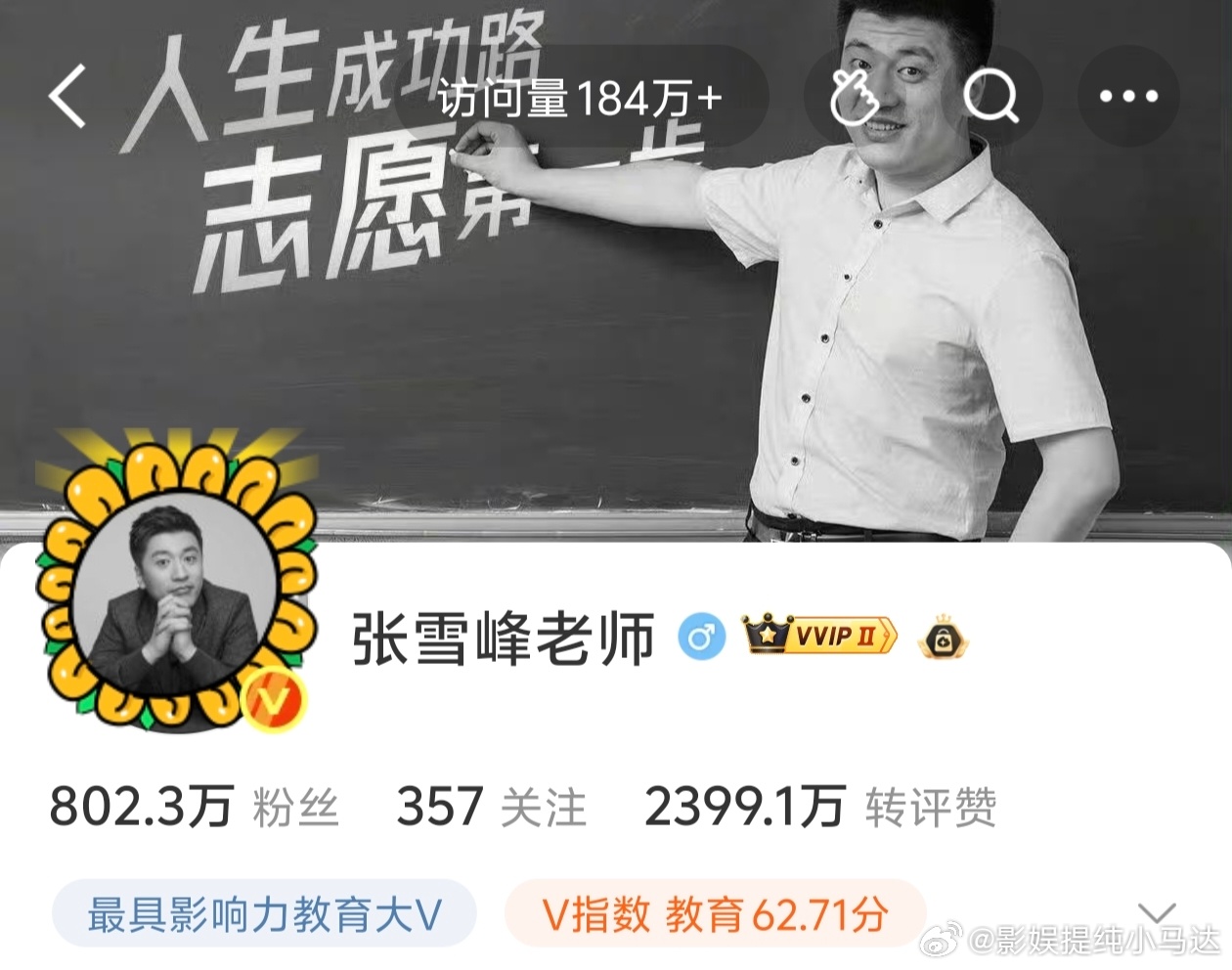 张雪峰不仅小红书、抖音等平台头像变成了黑白,张雪峰的微博平台头像也刚刚变成了黑白!这是全平台都变成黑白了!为什么还没有看到官方消息通告,张雪峰的头像在各大平台就直接变成了黑白?!这是算间接确定了吗???张雪峰头像张雪峰账号头像变成黑白