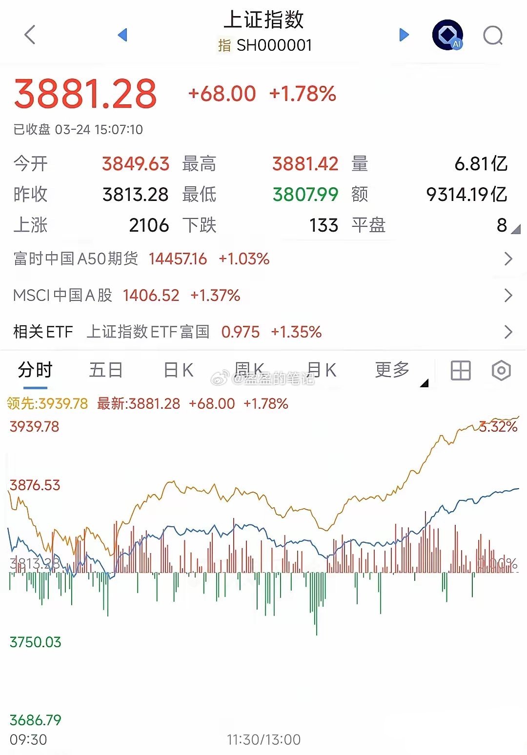 这是又出大利好消息了吗?A股下午突然起爆,科技股绝地反击今天A股上午可以说是没有反弹,不过到了下午指数上涨,个股跟着上涨,出现了普涨行情,科技股更是下午引领上涨。这肯定又出来了利好消息,布伦特原油下午出现了回落。美股盘前也出现了直线拉升,可以说下午到上午就是两级反转,尤其是原油价格,上午原油价格还在拉升,下午就出现回落,这里如果没有消息面干扰是不可能的。现在消息还没有出现,就等着晚上消息面了,如果向着和平方向发展,那么A股以及全世界的股市将会继续反弹,毕竟在冲突期间股市跌的真的太多了。