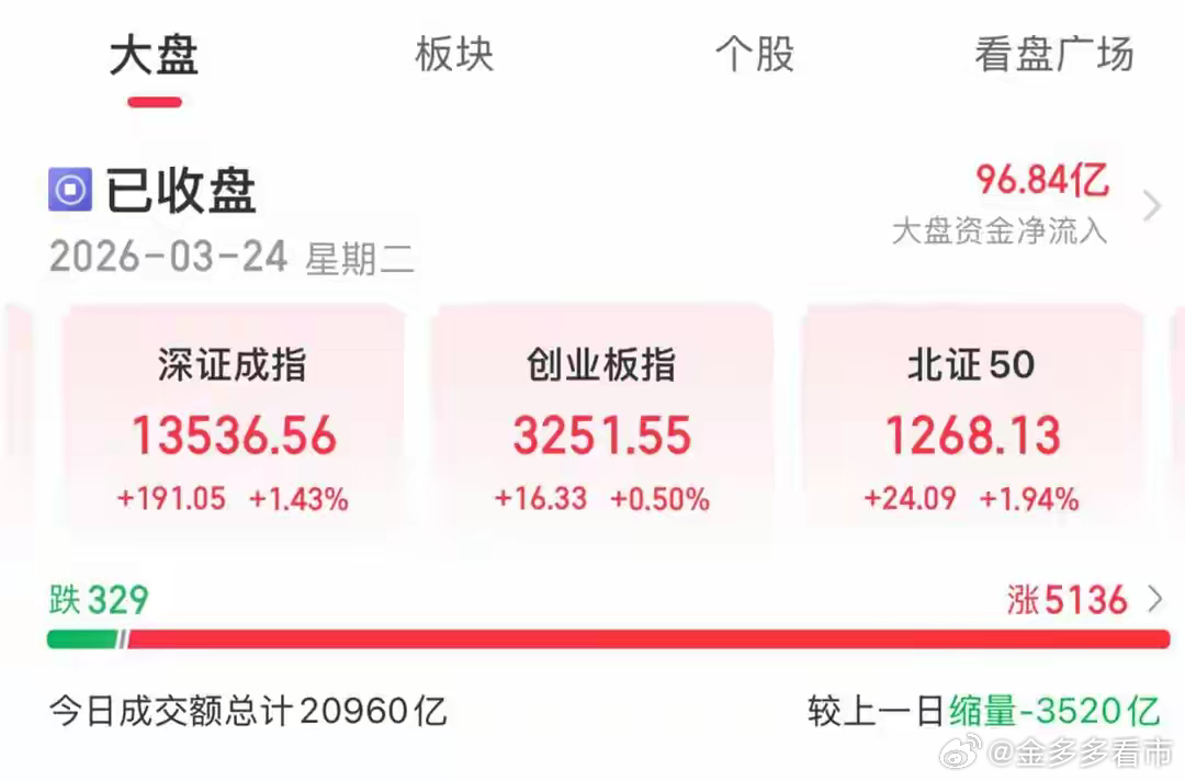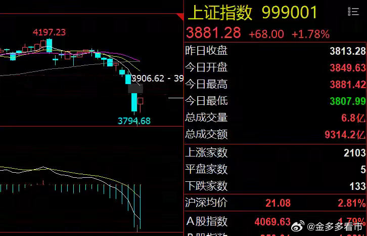 电力和医药板块大涨!大盘出现短线机会3月24日,A股探底回升,三大指数集体收涨,市场赚钱效应迅速回升,绝大多数板块和个股飘红,仅329只个股飘绿,与昨日形成极度反差,煤炭和油气等少数板块调整,电力、医药和影视等板块跌幅居前。具体题材方面,1、有关部门再提绿色电力支撑作用,华银电力、华电辽能和绿发电力等20多只个股涨停。从电力板块来看,指数创下近十年新高并且偏离5月线较远,处于月线级别强压区,至少短线风险大于收益,追涨的性价比很低。2、生物医药大涨主要是药茅药明康德2025年业绩大增并且营收和净利润都创历史新高,股价大涨近7%带动板块强劲拉升。从板块指数来看,一方面历史大底早已确认,一方面调整足够充分,技术面上方存在两个周线级别的下行缺口,肯定要回补。目前位于月线级别的底部区域,逢低布局的好机会。大盘方面,今天反弹属于预期,一方面是中东局势缓和,一方面是连续大跌后存在反弹修复需要。大盘出现短线震荡区间,底部在昨日低点3794附近,顶部在3955周线缺口附近,也就是说短线高抛低吸机会来了。A股