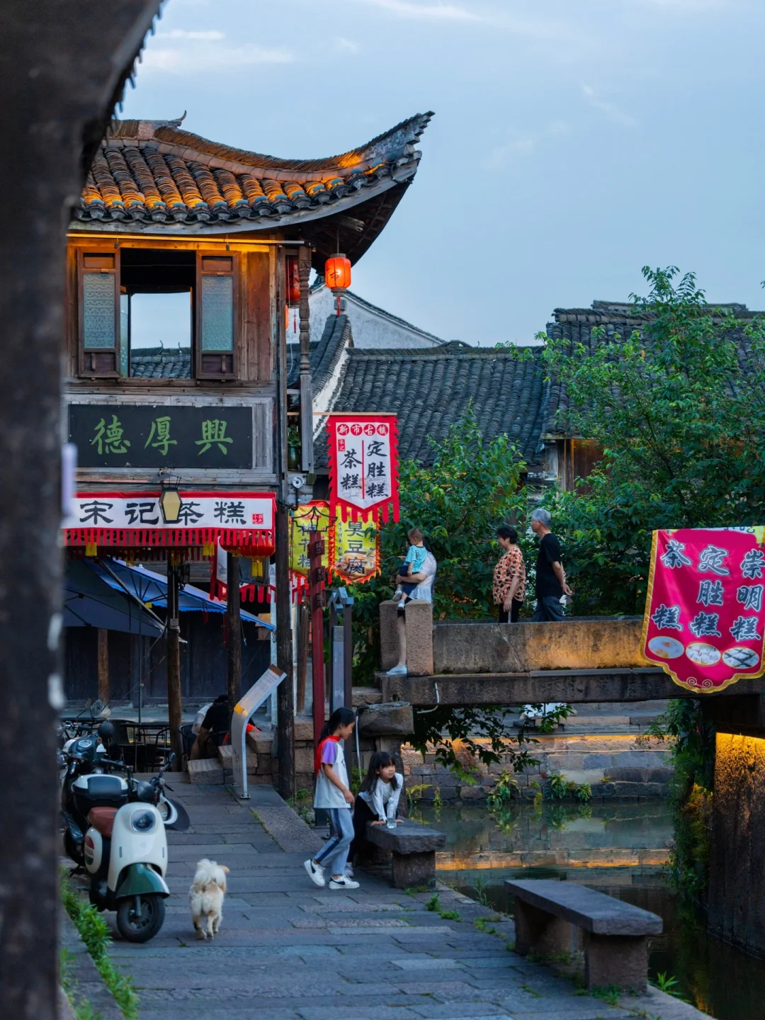 ❺古镇美食推荐:梅花糕、茶糕、羊肉面、麦芽圆子。「新咖啡」拥有最美的古镇窗景,还有一家网红夫妇开的「企鹅咖啡」很温馨。