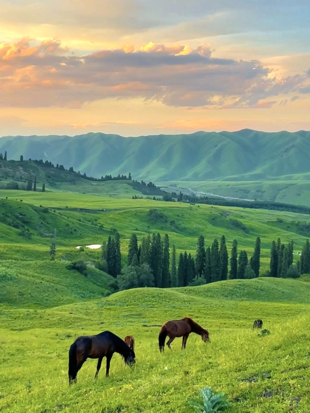 六月去了一趟新疆,晚霞下的草原牛马,好治愈~