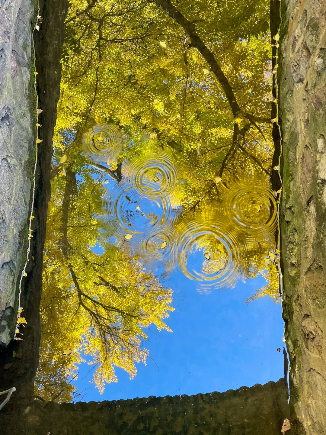 十月在晋祠邂逅了500年的古银杏,落叶晕开水面,像一幅油画。