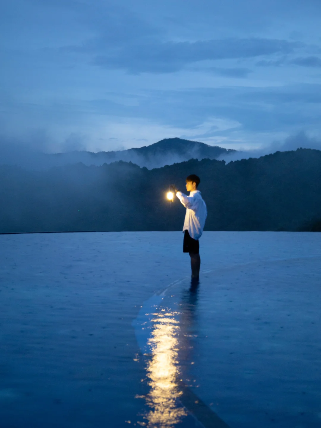 坐落半山腰的无边泳池,航拍就像一颗蓝宝石~是村子里的最高点,视野最佳。可以一边戏水一边欣赏整个葛仙村的美景。