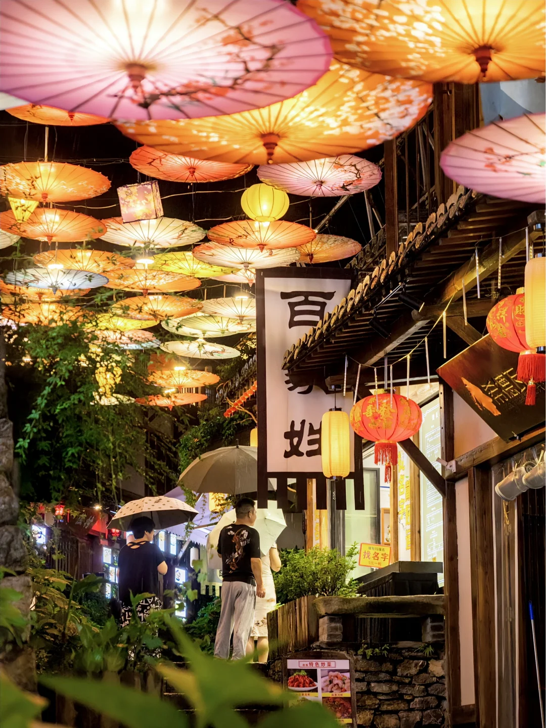 古色古香的街道,是村子里最热闹的地方,晚上灯笼亮起,仿佛穿越到富贵迷人眼的东京城。