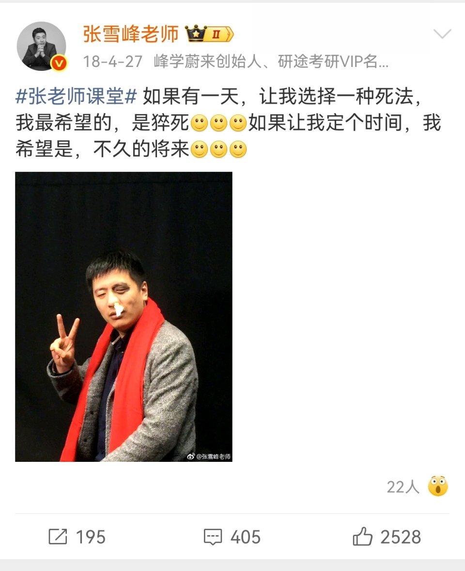 张雪峰去世 张雪峰2018年发的微博,2025年的直播,都提到了自己的死,他应该是早就对自己的健康状况很了解了。张雪峰公司发布讣告 张雪峰曾说能帮到大家是最重要的