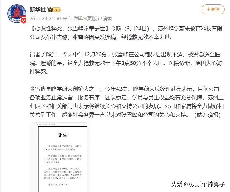 不知道大家有没有一样的感受 张雪峰走了,作为路人,心里竟然莫名的有一丝悲伤,搞不清为啥,看到很多网友留言,说张老师是个好人,或许是这个原因吧! 感觉张雪峰活的挺通透,曾在节目中谈及生死,说过墓碑上会写上:人生真好玩,下辈子还来…… 嬉笑怒骂,性格直爽,曾带给大家很多的欢乐,说的话也很有人生哲理。 看到很多媒体都报道此事,包括国社,一介平民,实属荣幸。 张雪峰走了,有点突然,大概最放心不下的就是女儿吧,回看曾经的分享,真的宠成了掌上明珠,画面温馨,让人羡慕。 突发感慨,人生无常,珍惜当下,过好每一天。