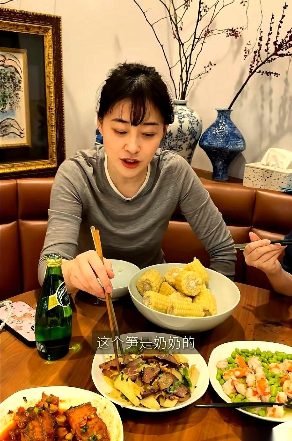 刷到梅婷在家吃饭,我愣了三秒。 真的,就愣住了。 那张脸,是卸掉了所有脂粉和灯光的脸,甚至能看到一点点疲惫,但特别松弛。 桌上呢? 没啥米其林,也没啥摆盘艺术。 奶奶种的笋,自家地里的青菜,一盘红烧鱼,几块腊肉。 热气腾腾,乱糟糟,又活生生。 这不就是我妈或者我姥姥家的饭桌吗? 吵吵嚷嚷,筷子满天飞,聊的都是谁家孩子考了多少分,哪个亲戚又胖了。 我们天天在网上看明星,看他们活在精修图里,活在奢侈品牌堆砌的“梦想生活”里。 可到头来,最让我们心头一软的,竟然是这样一顿朴素的家常饭。 你说,人到底图个啥? 是图那个光鲜亮丽的壳子,还是图这口热饭,这屋子里的烟火气? 那点所谓的光环,说白了,就是一件上班穿的“工作服”。 下班了,衣服脱了,谁还不是个围着饭桌,惦记那口家常菜的普通人啊。 这才是生活,真TM的踏实。