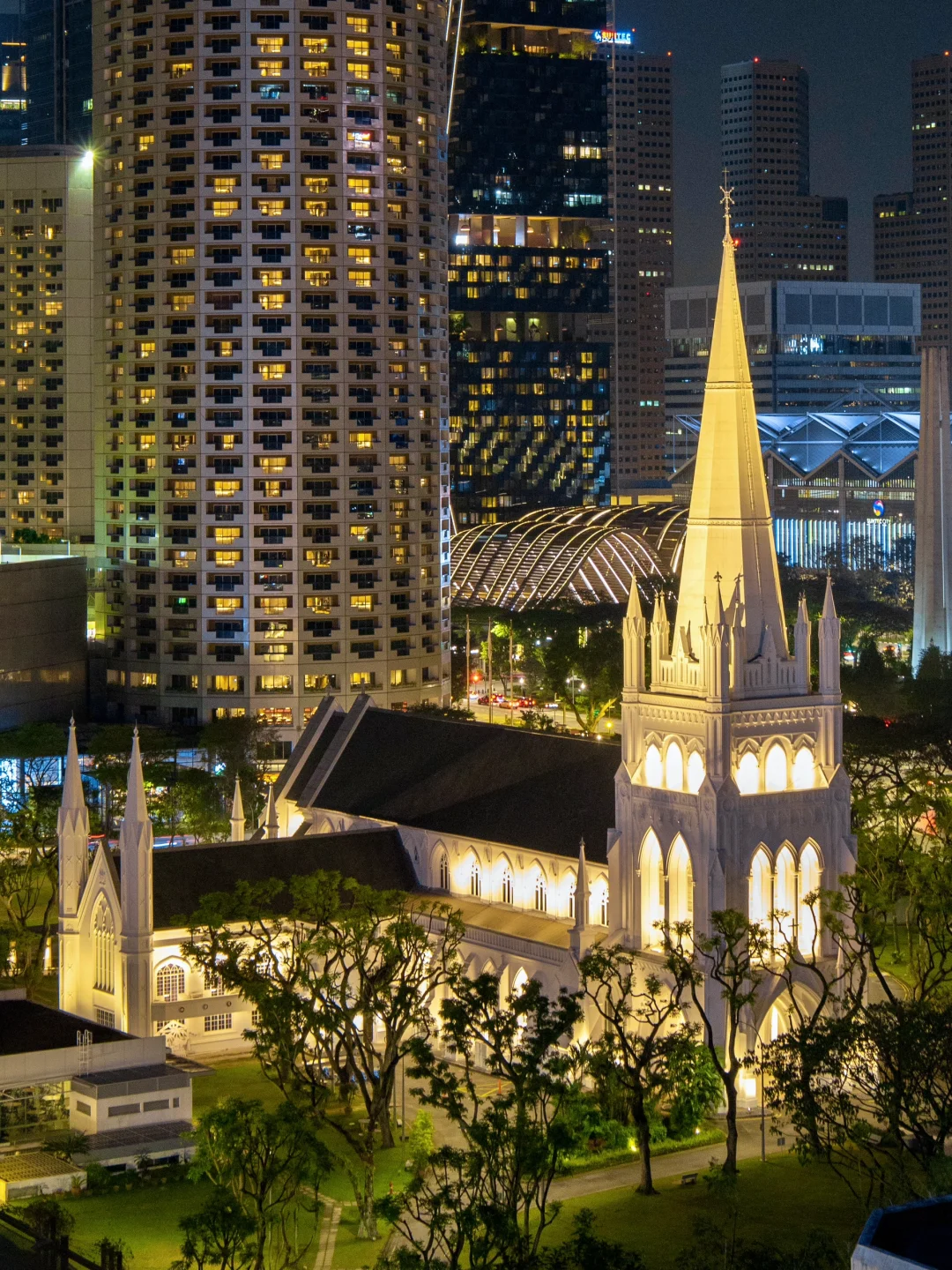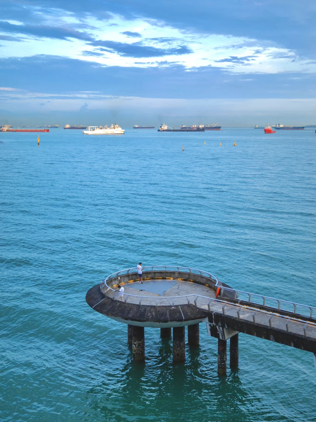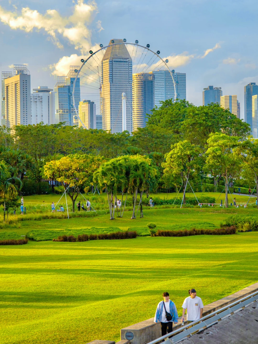 有超级chill的天台草坪,西面可以看到“超级树”“摩天轮”,是日落打卡的绝佳景点~东面则是课本里的东方十字路口“马六甲海峡”。