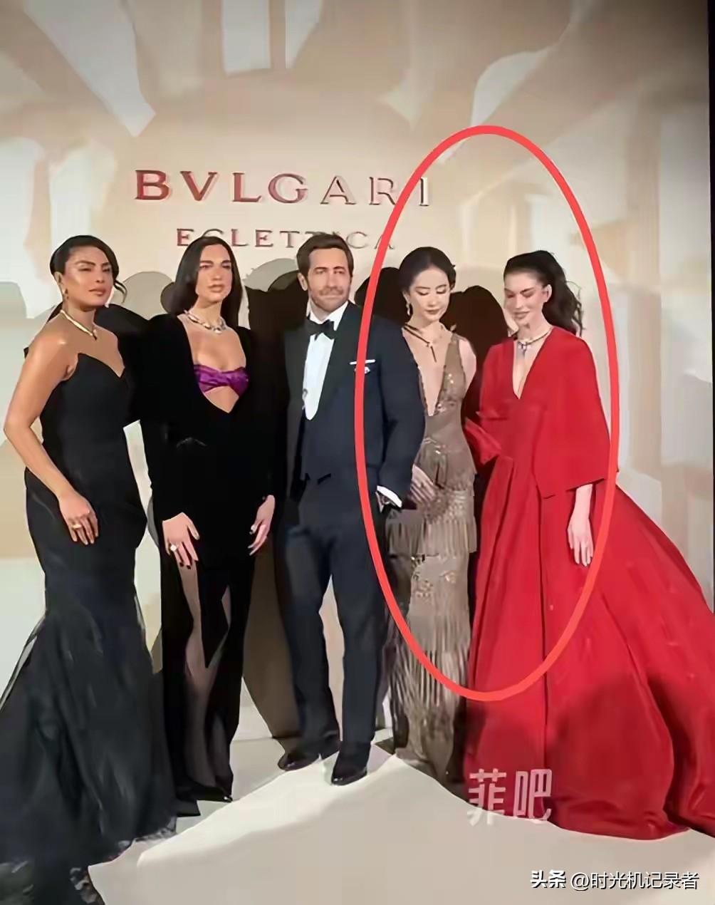 刘亦菲太娇小了,刘亦菲照相被挤得没地方,乔普拉和利帕两人冷艳感十足,但把画框占了一大半,好像两个路人,刘亦菲和海瑟薇只能挤着,尤其刘亦菲还要拉着海瑟薇给她足够的空间。
