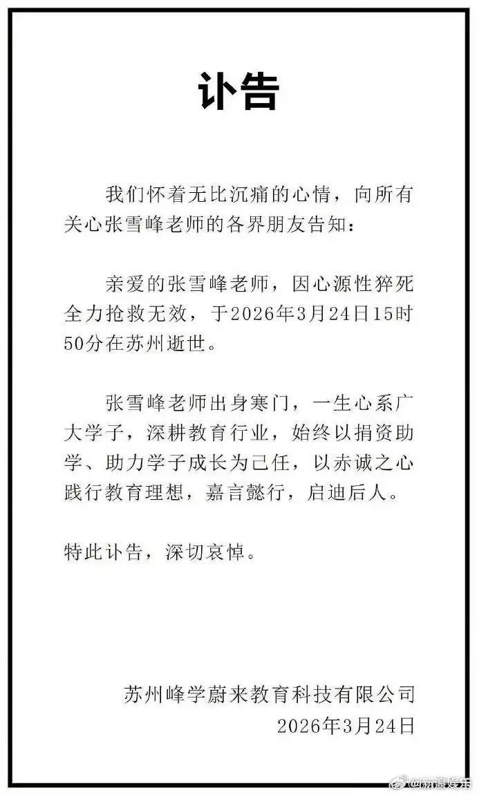 年仅41岁 人生百态,既赢了,又输了—— 张雪峰一直把女儿宠在手心里,早就给她铺好了舒坦的人生路,孩子阳光又可爱。谁能想到他突然离世,小小年纪就永远失去了爸爸,想想都心酸。