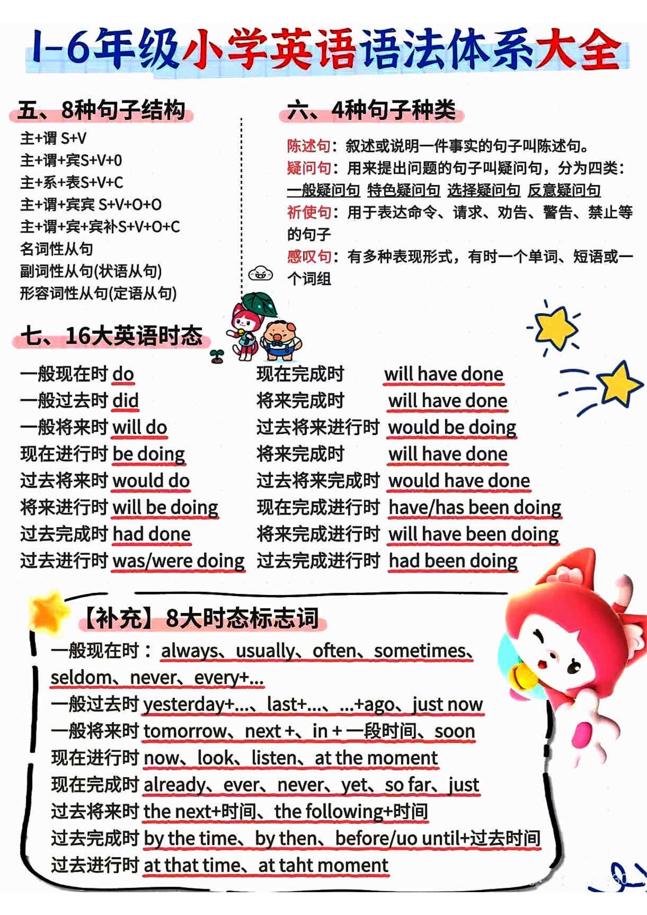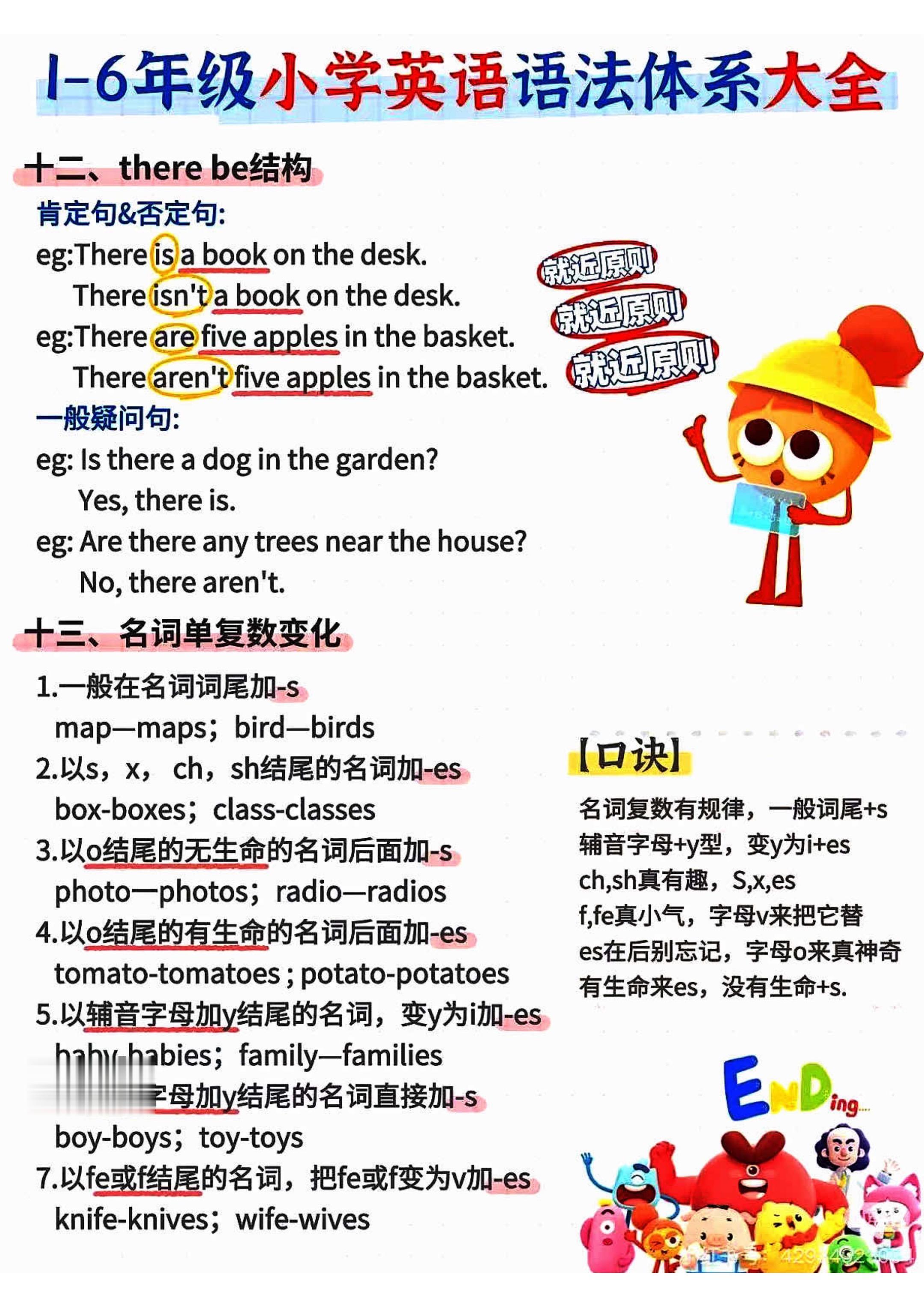 小学1-6年级英语语法体系大全知识汇总。 技巧学习