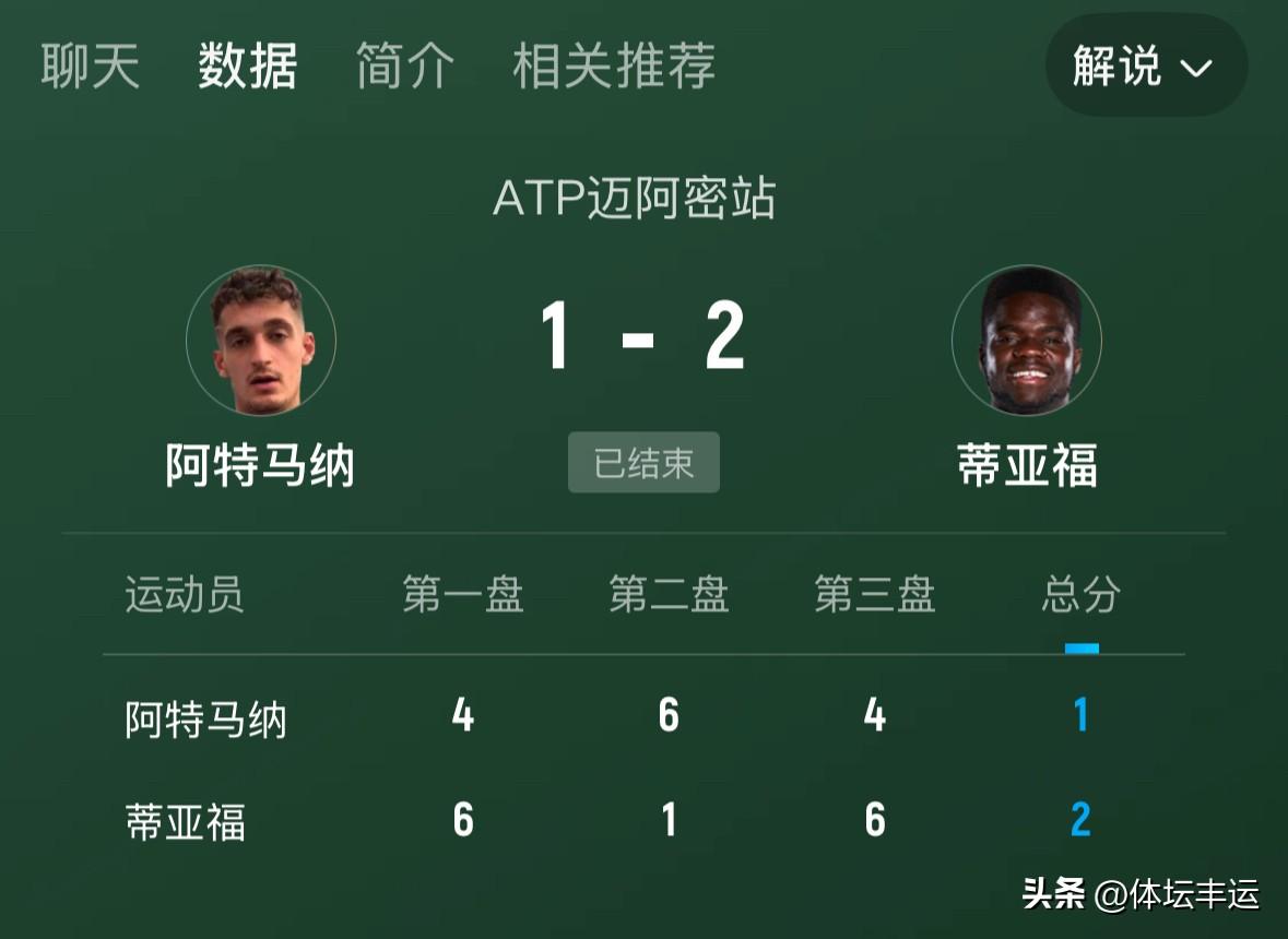 快讯,蒂亚福战胜阿特马纳晋级男单八强🔥🔥 刚刚🔚的迈阿密男单第四轮1/8决赛第六场比赛,19号种子美国蒂亚福6-4、1-6、6-4战胜法国阿特马纳晋级! 首盘比赛,蒂亚福迅速进入状态,凭借着出色的发球和积极的底线进攻,以6 - 4先下一城!阿特马纳在第二盘及时调整战术,加强了对蒂亚福发球的接发,并且在底线相持中也占据了上风,以6 - 1强势扳回一盘,将比赛拖入决胜盘。 决胜盘的较量尤为关键和激烈,蒂亚福在关键时刻展现出了坚韧的斗志和出色的心理素质,他不断调整自己的节奏,寻找阿特马纳的防守漏洞,最终以6 - 4拿下决胜盘,成功晋级男单八强!