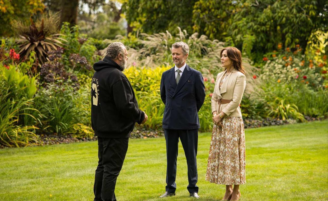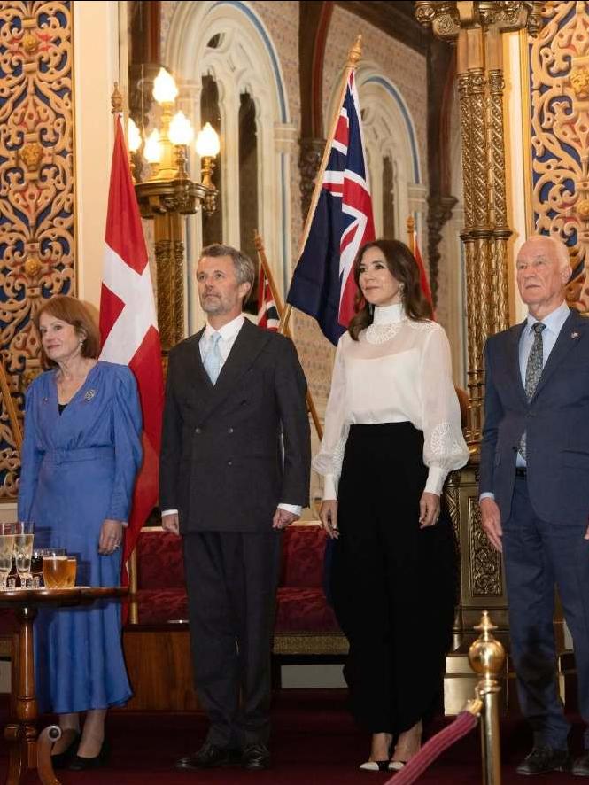 丹麦国王夫妇@澳洲Day6 最后一天马不停蹄到了塔斯马尼亚, 那里的龙虾是世界最大品种。 这里是玛丽本人的故乡,安排相对轻松, 晚会还惊现玛丽的姐姐帕特里夏,是温馨一幕了[惊喜]