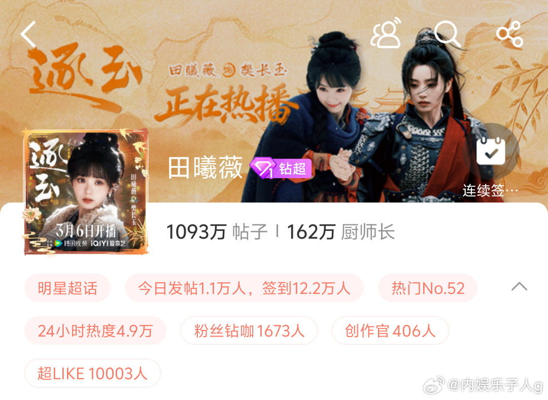 田曦薇超like破10000啦逐玉里的田姐真的好亮眼好吸粉