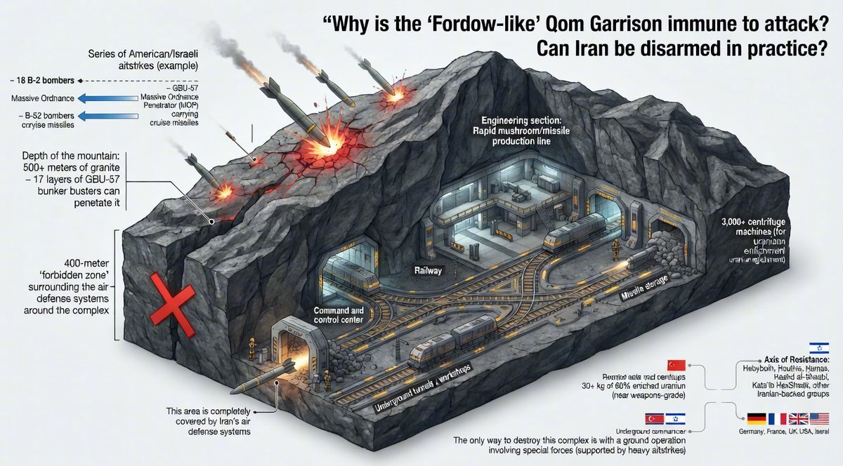 我想试着用几张解剖图显示伊朗军队的秘密地下导弹网络,现在这些网络正在承受着美国和以色列军队的强烈打击,它们都被修建位于伊朗高原的地下500米处,隧道纵横,形成了一个或者是全世界最大的“导弹地铁系统”。