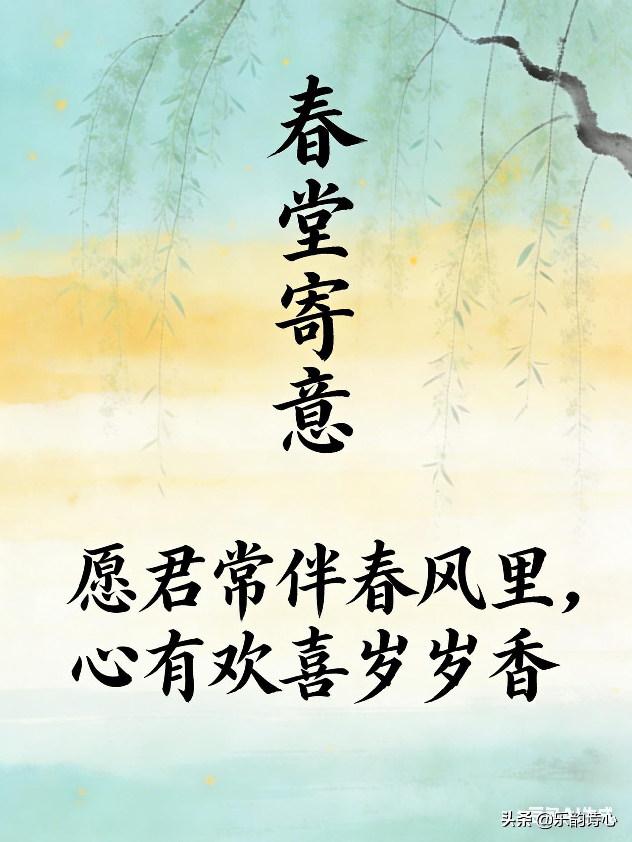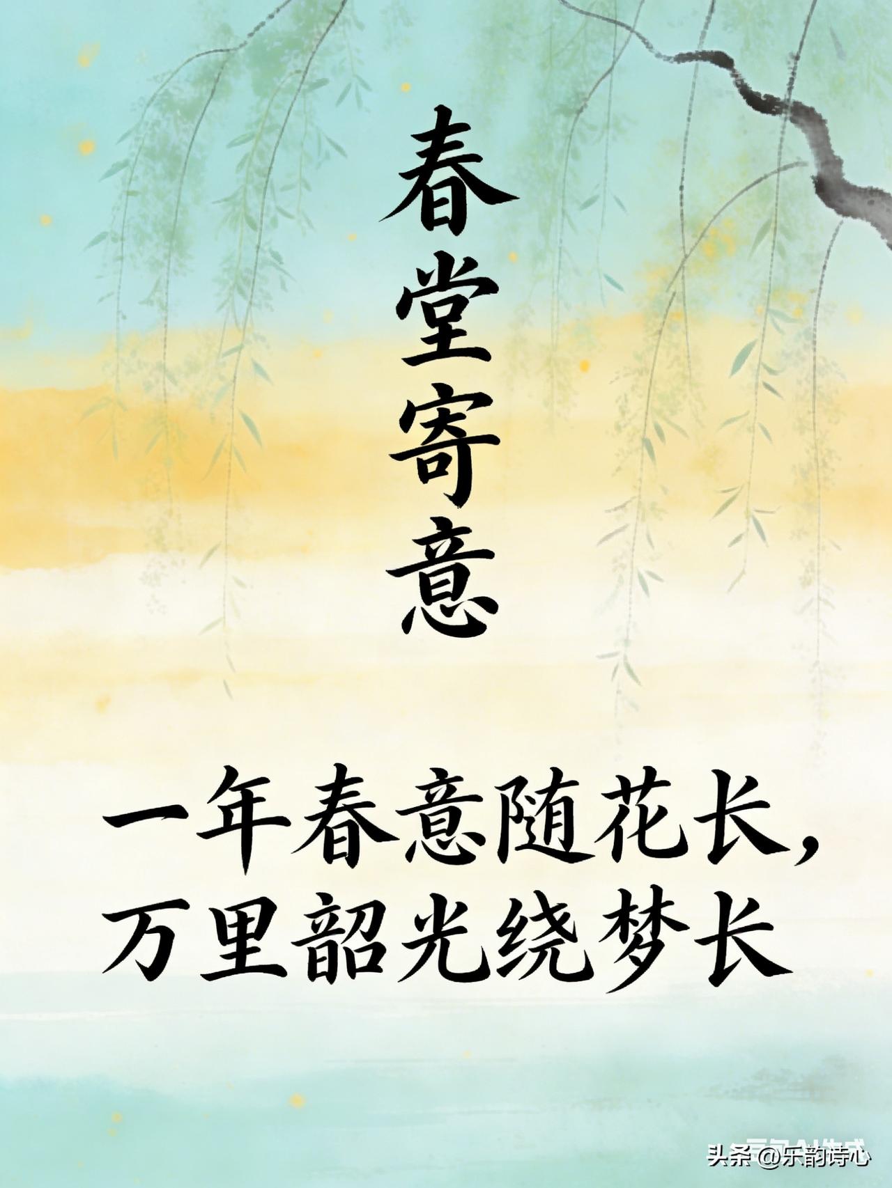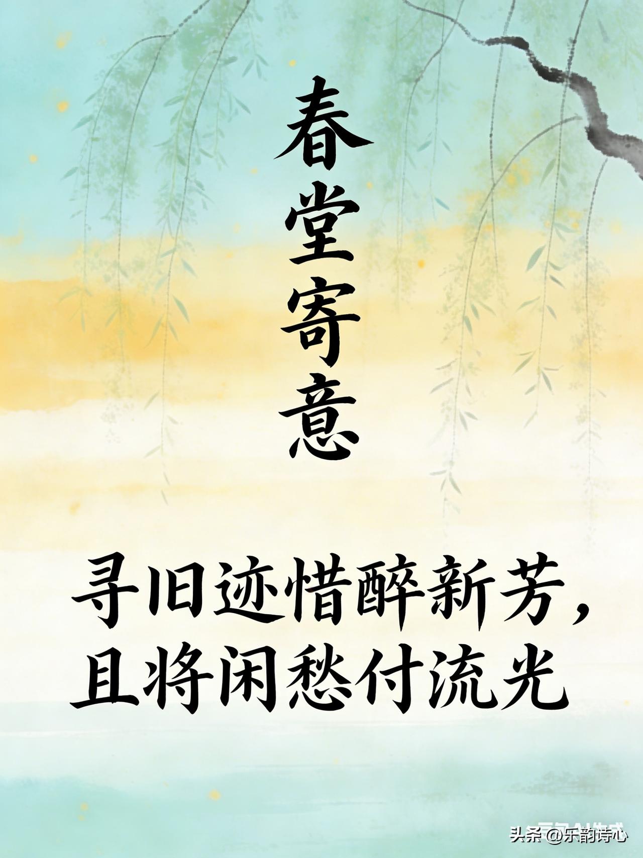 《春堂寄意》乐韵诗心原创诗词: 柳色初深映小窗, 东风微暖入新堂。 一年春意随花长, 万里韶光绕梦长。 寻旧迹惜醉新芳, 且将闲愁付流光。 愿君常伴春风里, 心有欢喜岁岁香。 这首诗以初春堂前柳色起笔,借东风暖堂的融融春意,抒发春日渐深的欣喜。诗人在新旧交替中感怀过往、珍惜当下,将闲愁寄予春光,最终以真挚祝愿收尾,愿亲友常伴春风,岁岁喜乐如花香萦绕。整体清新温婉,既有春日生机的舒展,也暗藏对岁月与陪伴的珍视。
