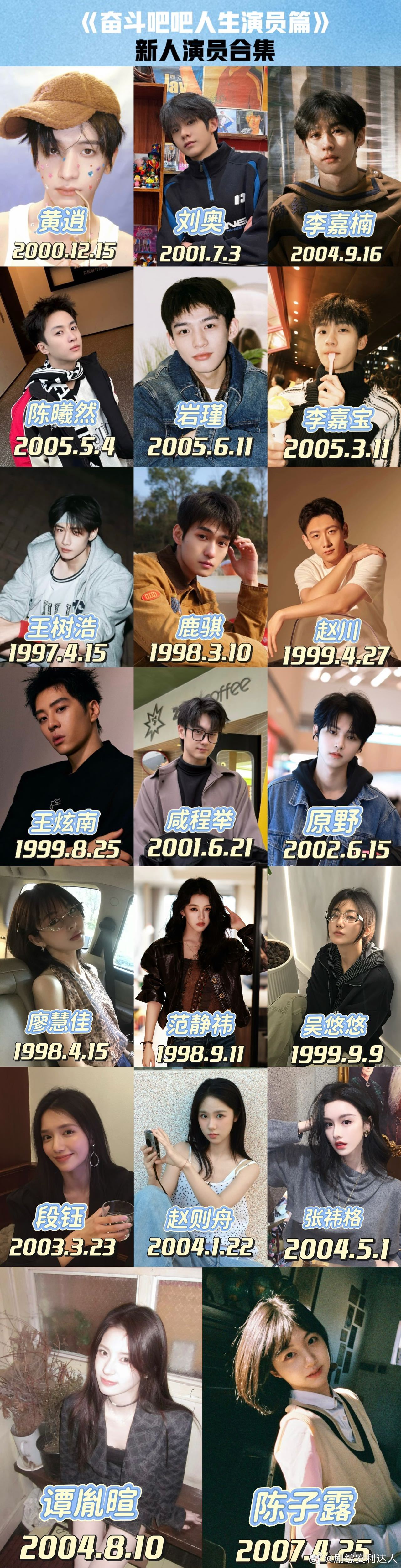 05花生预备役上新了奋斗吧人生 《奋斗吧人生-演员篇》一次性上新20位新人演员,为内娱注入新鲜血液,全员男帅女美。其中既有陈子露、岩瑾这样零经验的05后新人,也有原野、吴悠悠、廖慧佳等大家眼熟的面孔,节目定档3月31日。