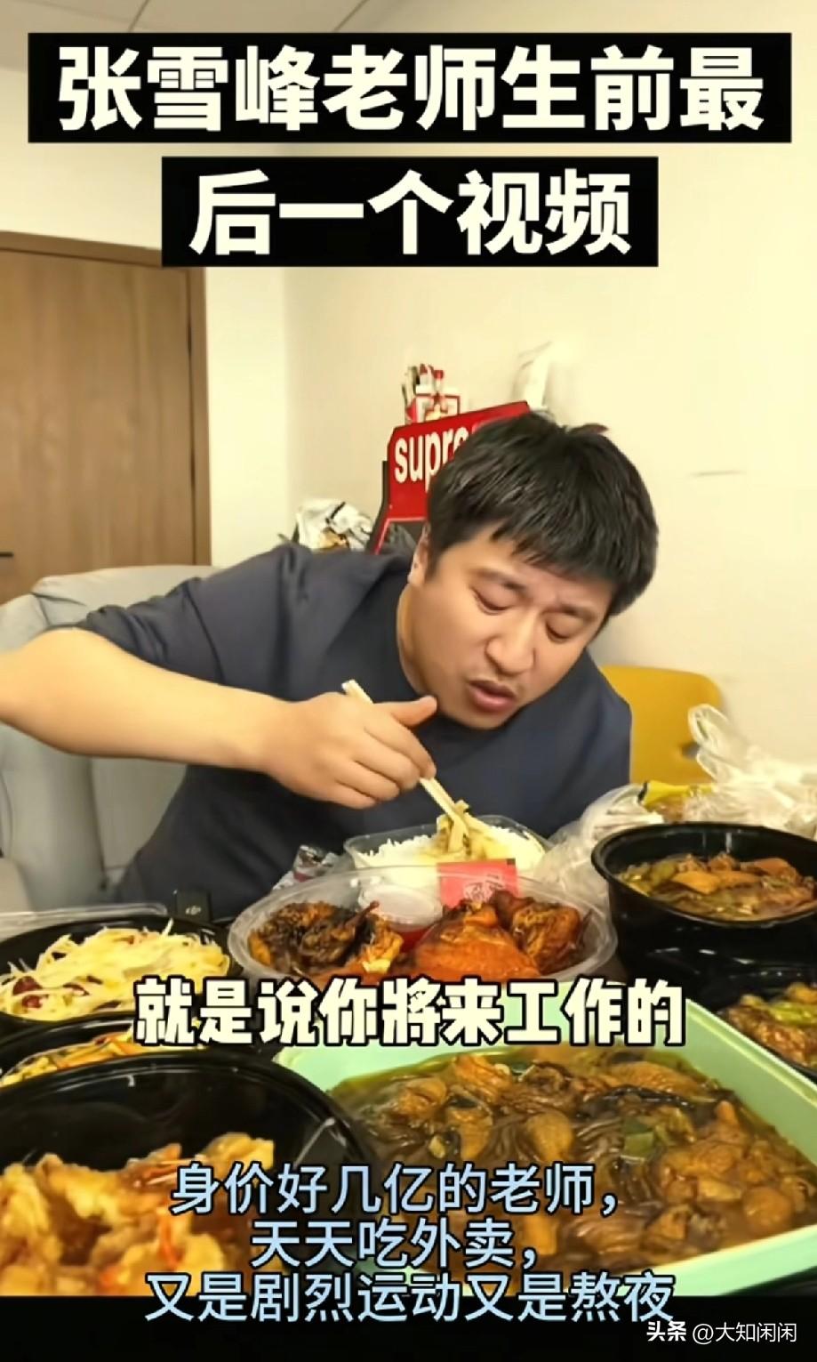 这是张雪峰昨天中午出镜吃午饭的画面。一碗米饭六碗菜。 用塑料盒装着,估计是点的外卖,看着油乎乎的。 成天在镜头前坐着,吃这么油腻,想必他是打算靠跑步甩掉多余脂肪。正常慢跑、适量运动,这没毛病。但为啥要搞超负荷运动呢?张雪峰怎么说也该懂些科学常识吧! 人在饮食和运动上,得讲究平衡。光想着靠过度运动抵消不健康饮食,很可能适得其反。大家身边有没有类似因为不懂平衡,在饮食和运动上出问题的例子?咱们来聊聊。