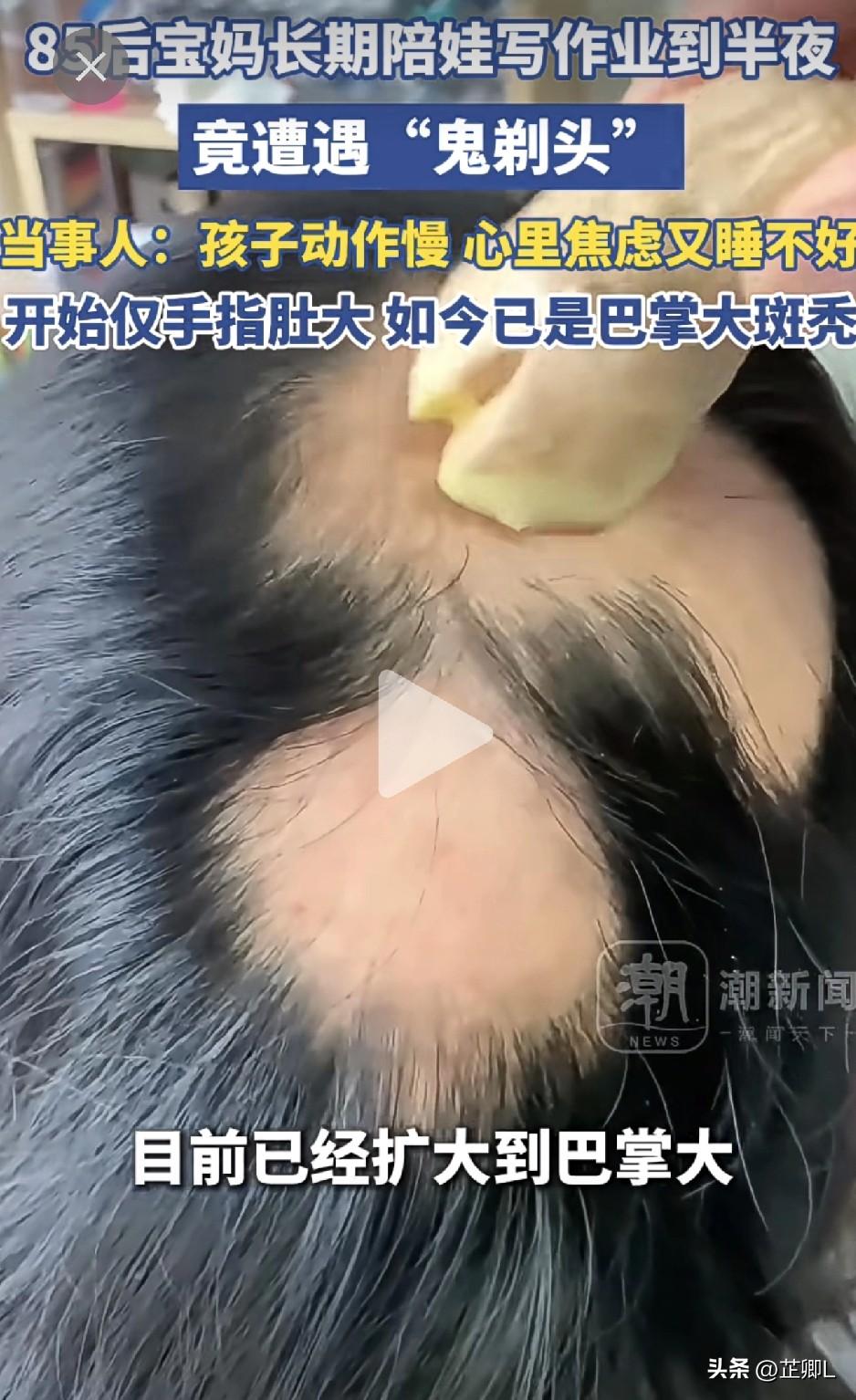 苏州宝妈崩溃!长期辅导作业竟致“鬼剃头”,医生急劝:千万别拿命较劲!网友:放过孩子,放过自己! 孩子的作业,真能把家长逼进医院? 江苏苏州就有一位宝妈,活生生被“作业”逼出了病! 因为长时间盯着孩子写作业,精神压力大到爆表,她突然发现自己头上大把大把掉头发,居然形成了巴掌大的一大块斑秃,俗称“鬼剃头”。 去医院一查,医生直接点明原因:就是辅导作业气出来的!😱 医生说,辅导作业时家长大多血压飙升、情绪暴躁,长期上火伤肝,内分泌全乱了套,毛囊直接受损,这才突然掉发。 真的太扎心了!多少家长为了娃的成绩,熬红眼睛、操碎心,最后先把身体熬垮了。 孩子的成长是场马拉松,别为了一时的分数,赔上自己的健康。成绩真没那么重要,身体健康才是第一位! 辅导作业,放平心态,孩子尽力就好,咱们的身体才是第一位的! 辅导作业别较真,别焦虑,成绩再重要,也没有你的健康重要! 放过孩子,也放过自己吧! 大家平时辅导孩子会忍不住发火吗?有没有解压的好办法? 素材来源:潮新闻,侵联删!