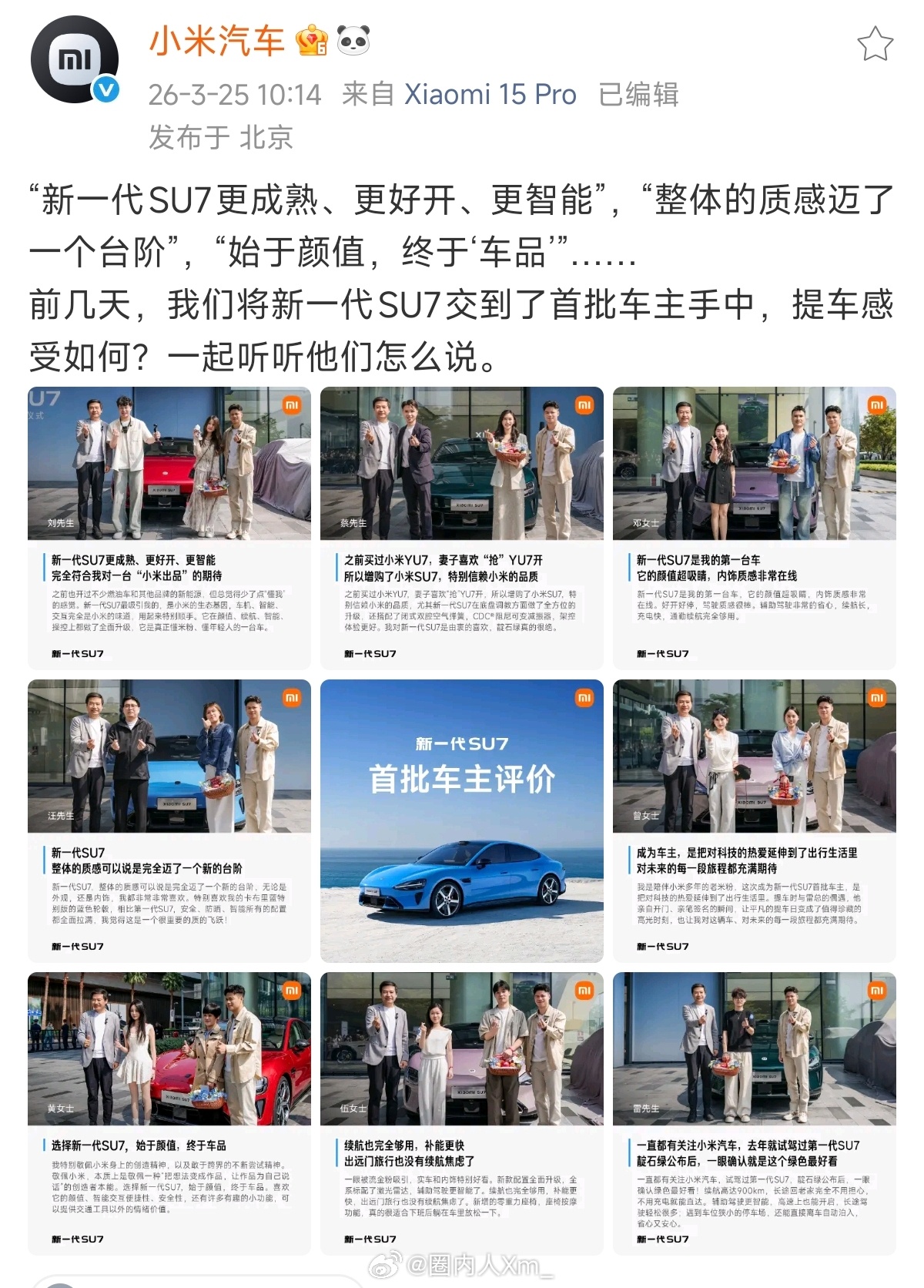 新一代SU7锁单已经超过3.5万辆小米新su7销售周报 报告明确显示,大部分进店客户压根不考虑其他品牌,多少人本来没打算买新能源车,全是因为小米SU7才开始动心,20-30万价位闭眼入的六边形战士,这也是从小米汽车上市以来用心造车、真诚服务等积累的用户口碑、大众认可度直线上升!