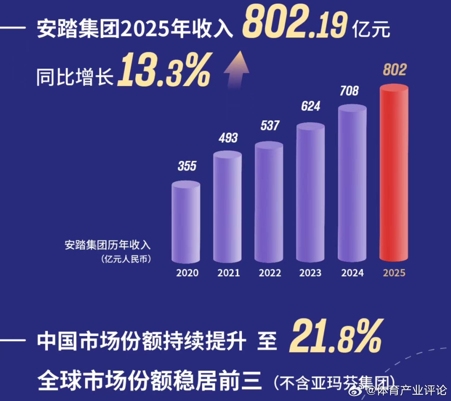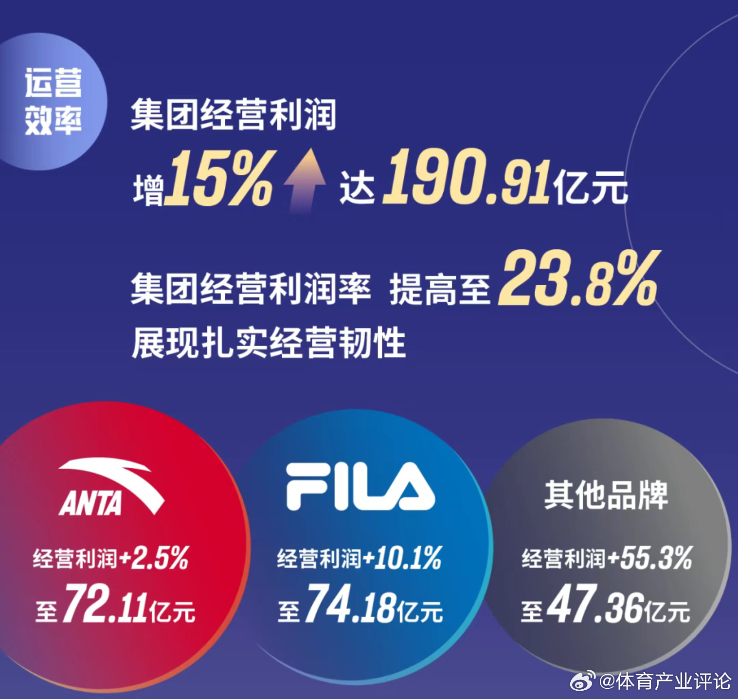 安踏财报显示品牌份额在全球市场稳居前三,而这还是不包括亚玛芬体育的情况下,加上亚玛芬,安踏集团的收入将超过1200亿。