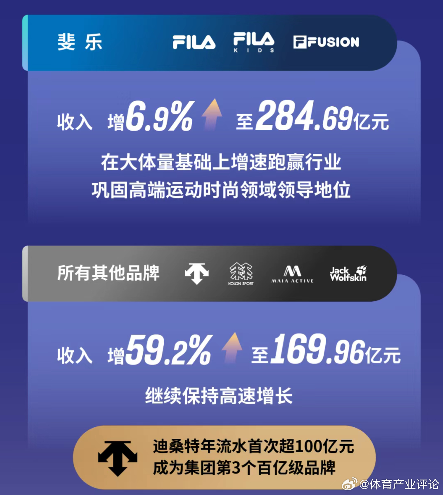 此外迪桑特成为了安踏第三个年流水突破百亿的品牌,可隆则是集团增速最快的品牌。