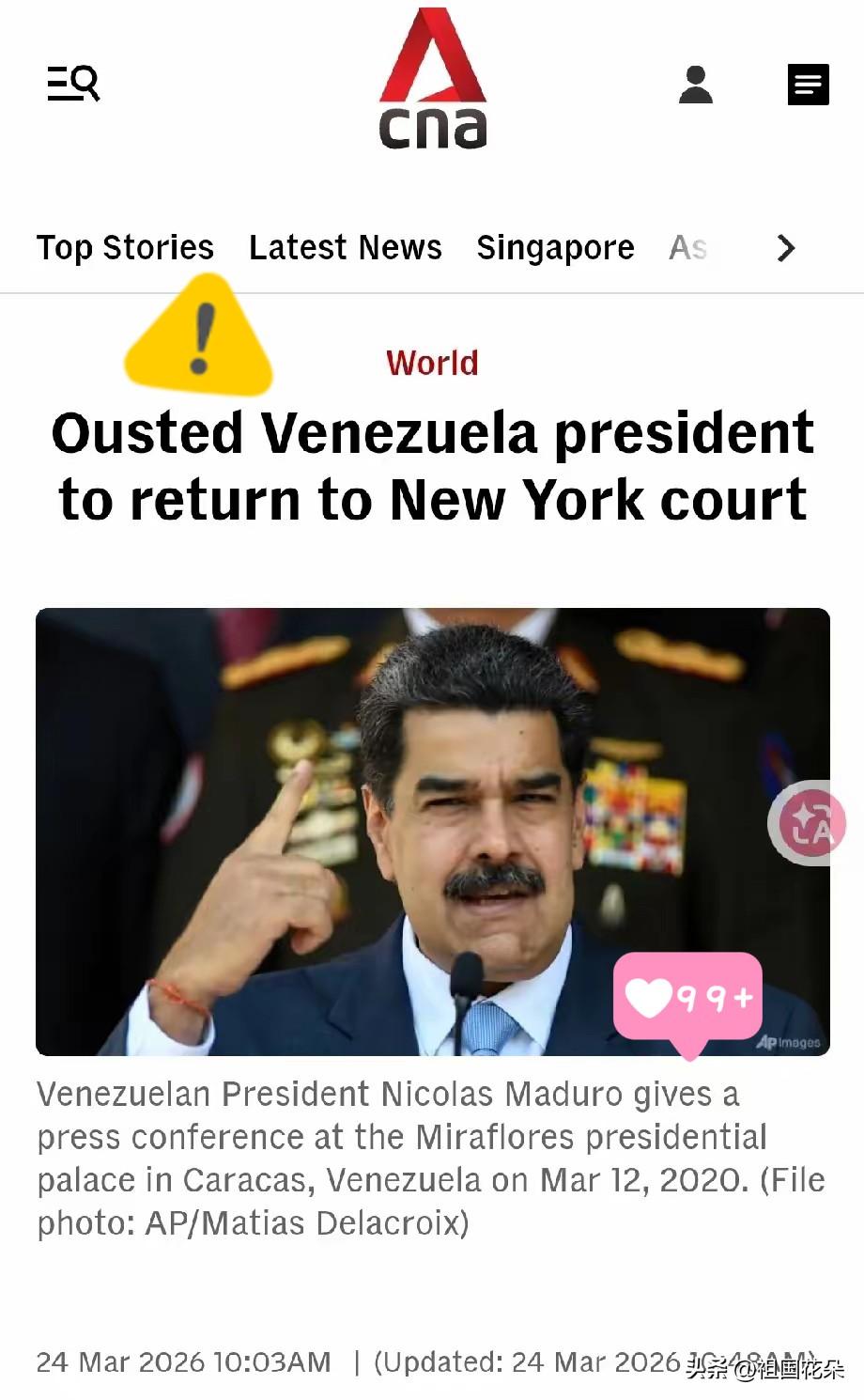 多家媒体3月24日报道,委内瑞拉总统马杜罗及其妻子将于2026年3月26日(本周四) 在美国纽约南区联邦法院出庭。 委政府本可支付律师费,但美方不批准,导致马杜罗没钱请律师。 美方的操作堪称赤裸裸的霸权表演。财政部曾短暂批准委政府支付律师费,三小时后又无理由撤回许可,连基本的程序正义都不愿遵守。 马杜罗的辩护律师波拉克早已提交撤案动议。美方剥夺他国元首的辩护权,直接违反美国宪法第六修正案,这场庭审从根上就站不住脚。 国际法明确规定主权国家元首享有绝对豁免权。美国无视“平等者之间无管辖权”的基本准则,强行审判他国总统,是对国际秩序的公然践踏。 美方对马杜罗的指控早已蓄谋多年。2020年就以贩毒罪名起诉,2025年更是将悬赏金额提高到5000万美元,政治打压的意图昭然若揭。 马杜罗在首次出庭时就明确表态。他强调自己是被绑架到美国,始终坚持无罪,更不会承认这场违背主权与法理的非法审判。 委内瑞拉民众的愤怒早已爆发。全国多地举行抗议活动,民众高举国旗声援总统,怒斥美国的强盗行径,捍卫国家主权的决心从未动摇。 拉美多国纷纷发声谴责美方。多国政府明确指出,美国的行为是军事侵略与司法霸凌,严重破坏地区稳定,必须立即停止对委内瑞拉的干涉。 这场闹剧的本质是石油与霸权的争夺。委内瑞拉坐拥全球最大石油储量,美国长期觊觎其资源,借司法手段打压合法政府,企图掌控南美能源命脉。 美方一边标榜法治与人权,一边肆意剥夺他国元首的辩护权利。双重标准之下,所谓的司法公正不过是强权政治的遮羞布。 马杜罗夫妇将在枪口下再次面对这场荒唐庭审。没有合法律师、没有公平程序,所谓的审判不过是美国自编自导的强权闹剧。 各位读者你们怎么看?欢迎在评论区讨论。