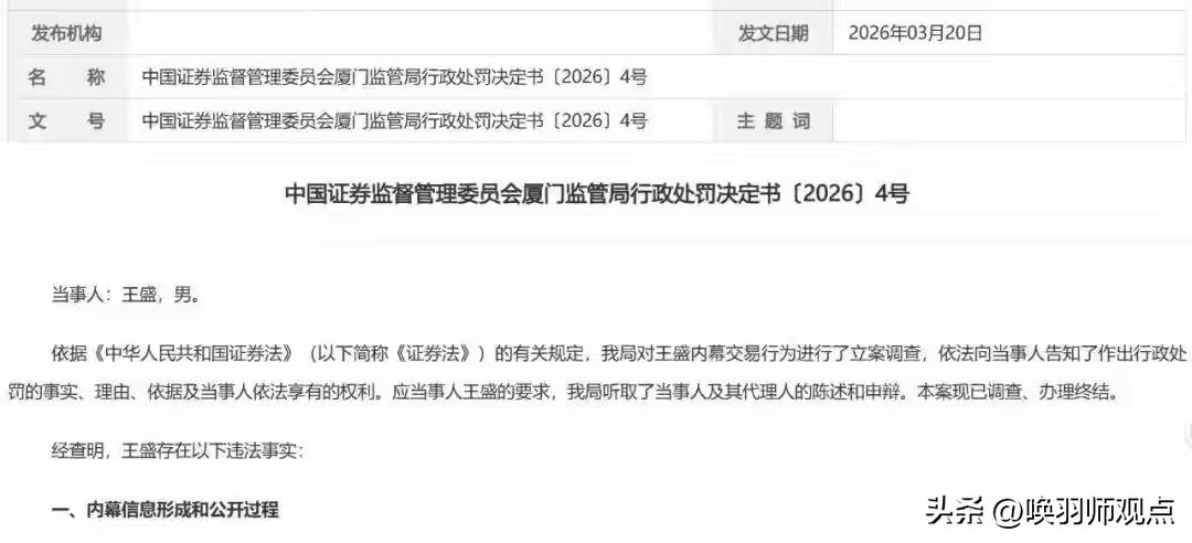 赚349万罚1398万!厦门内幕交易案创纪录,给所有股民上了一课 3月20日,厦门证监局对两起内幕交易案开出重磅罚单。当事人王盛在上市公司控股股东变更内幕信息敏感期内,买入股票154.36万股,盈利349.57万元,被没收违法所得并处以三倍罚款,合计罚没1398.29万元,创下厦门近年罚单新高。 专家指出,“没一罚三”的处罚力度,意在用“罚到肉疼”震慑心存侥幸者。另一涉案者孙明非作为内幕信息知情人,泄露信息被罚135万元;李乃霖听信买入,被罚没296万元。 两起案件警示:无论是“泄密者”还是“听信者”,都难逃法网。在内幕交易这条灰色链条上,没有“富贵险中求”,只有“刀尖上舔血”。守住法律底线,才是资本市场生存的第一原则。 --- 互动话题: 你身边有人因为“内部消息”炒股而栽跟头的吗?你认为怎样才能彻底杜绝内幕交易?欢迎在评论区聊聊你的看法!股市内幕交易 内幕公开 股票操盘内幕 券商内幕交易
