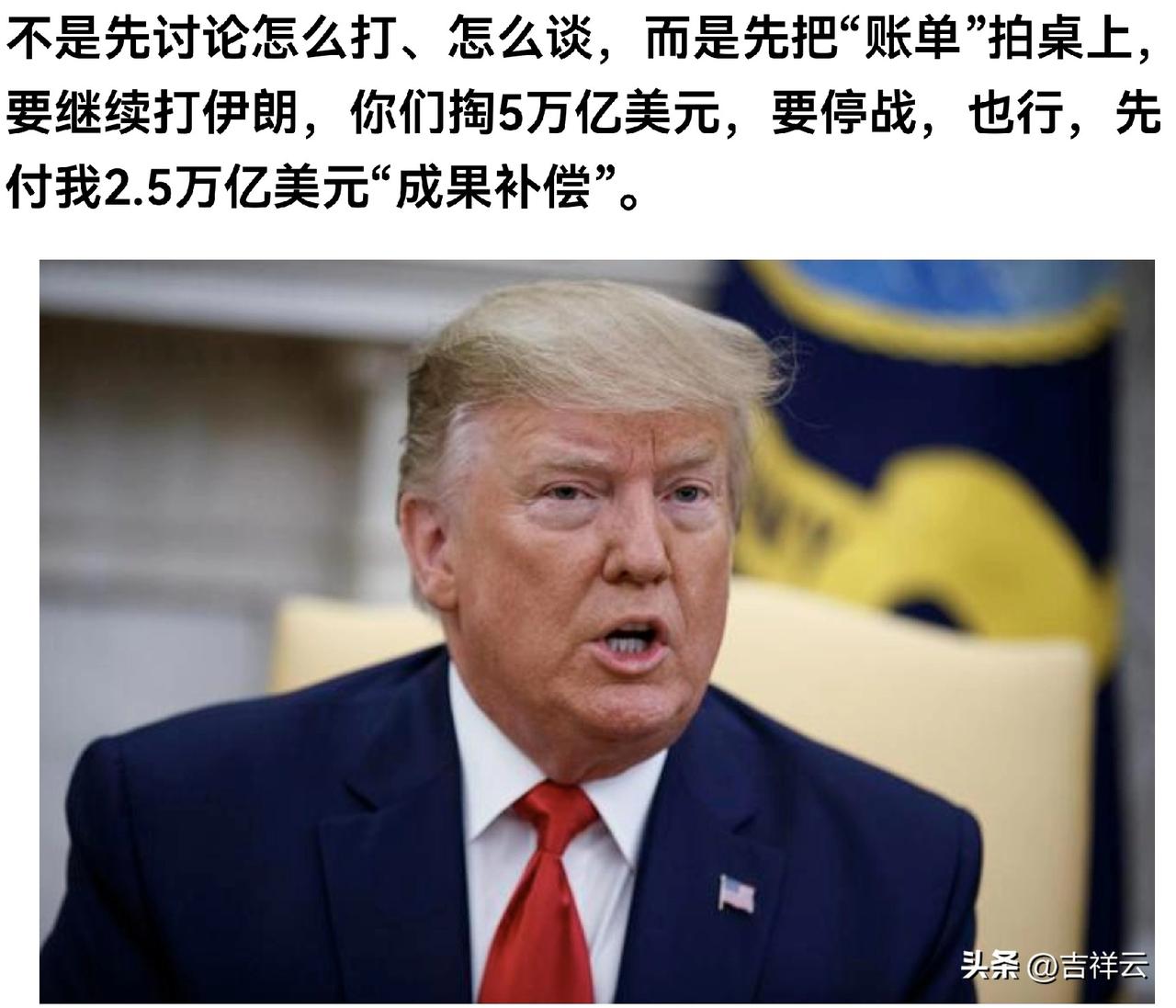 特朗普耍起流氓无边了。特朗普先是谎话连篇,谎称美国与伊朗进行了谈判,用来掩盖对伊作战吃不消的事实并为结束战争找到台阶 可话音未落伊朗官方立即出来否认,表示与美国无接触、无谈判、无协议,算是狠狠地打脸了特朗普。 眼看谎话被揭穿,干脆耍起了流氓。他向海湾国家发话,让美国继续打伊朗,可以,拿钱来,5万亿美元;要停止,也可以,拿钱来,2.5万亿美元。分明是特朗普先发动的对伊朗的袭击,跟海湾国家半毛关系都没有,现在非要逼海湾国家高低都要拿钱给美国,这不是耍流氓又是什么。 特朗普知道结束与伊朗的战事,必须要给国人有所交代,否则会吃不了兜着走,为此甩锅手段用了,撒谎手段也用了,都不灵。怎么办,耍流氓,于是用上了敲诈勒索手段。 现在与伊朗的战争输赢已经由不得他特朗普决定了,找个台阶下伊朗又不递梯子,只能走一步算一步,不如捞一笔还能有所交代。于是富得流油,靠石油生存,靠美国保护的海湾国家成了被宰的对象,“打得给钱,不打也得给钱”,这是公开的敲诈勒索。可以说特朗普耍流氓已经耍到无边了。如何看待特朗普处理国际事务的方式 特朗普雷人言论 特朗普碰壁 海湾国家如何摆脱在美伊冲突中的两难境地 (图片来自网络)