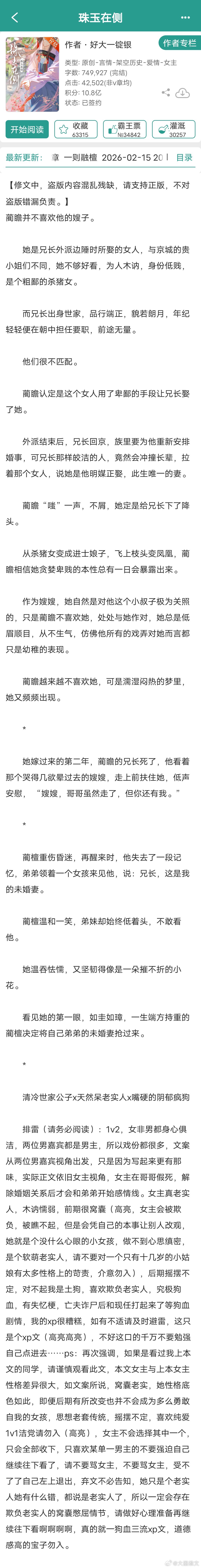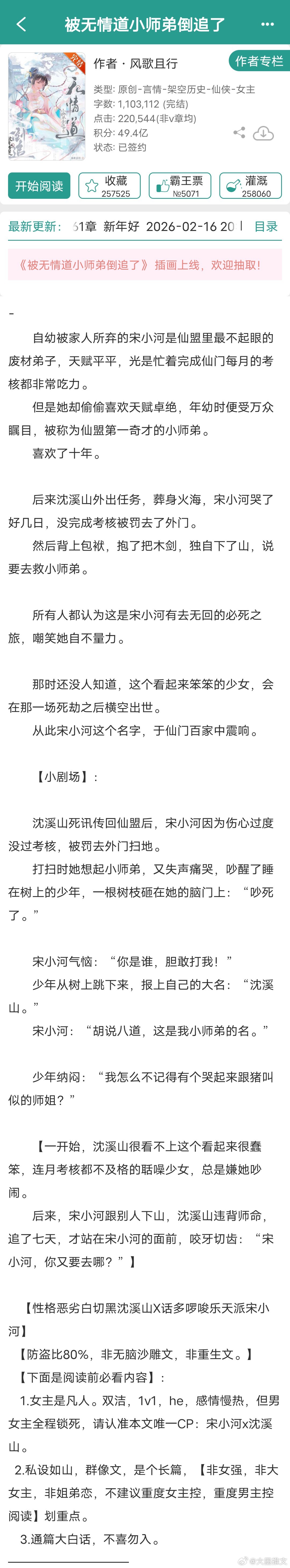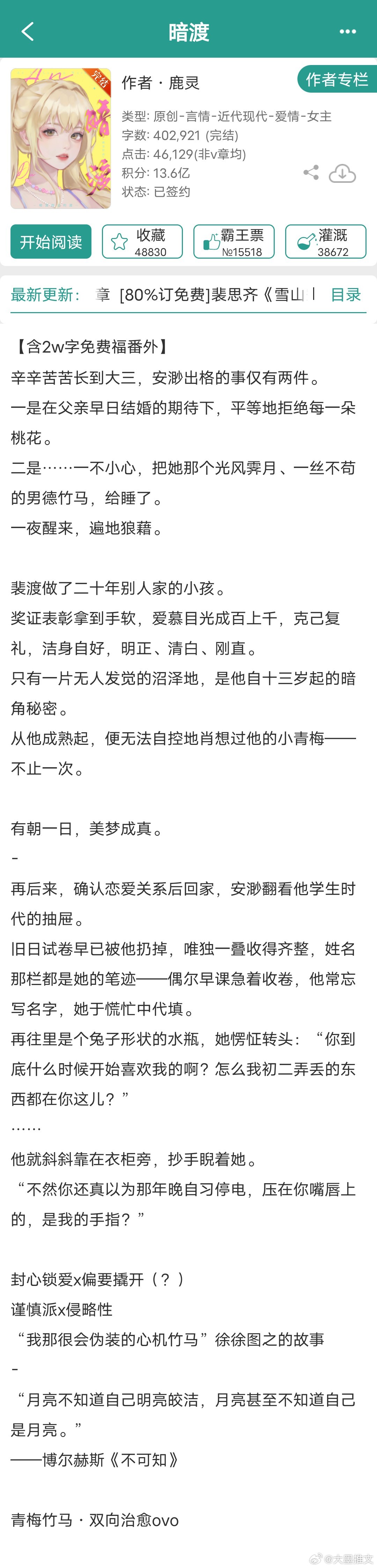 1《珠玉在侧》好大一锭银2《暗渡》鹿灵3《被无情道小师弟倒追了》风歌且行4《镜中色》时玖远上期:网页链接言情小说推荐言情小说