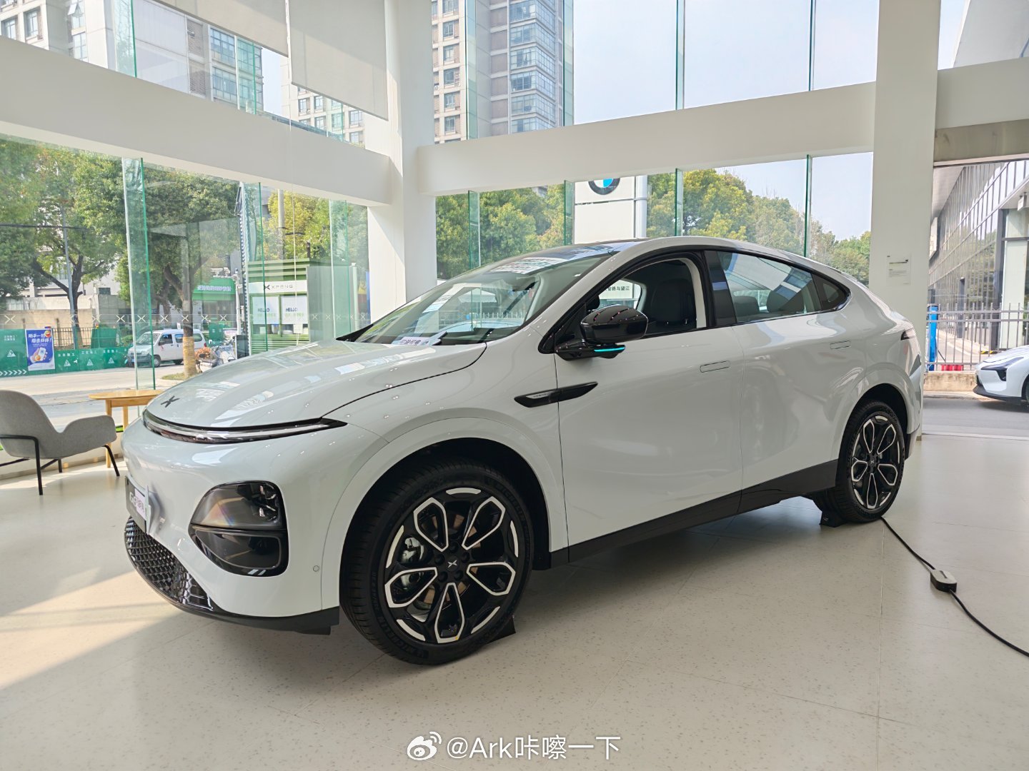 今天在跑华为乾崑智驾大赛的时候,顺道儿去了趟小鹏体验店,新款白色的小鹏P7好看