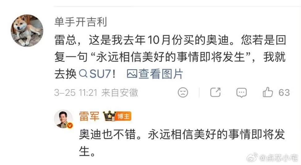 雷军一句话卖出一辆车 雷军身上的真诚和格局,真的很圈好感,之前还大方夸过奥迪,不踩竞品也不刻意标榜,这份坦荡其实就是对自家产品的底气。这份底气,也实实在在体现在新一代SU7的市场表现。