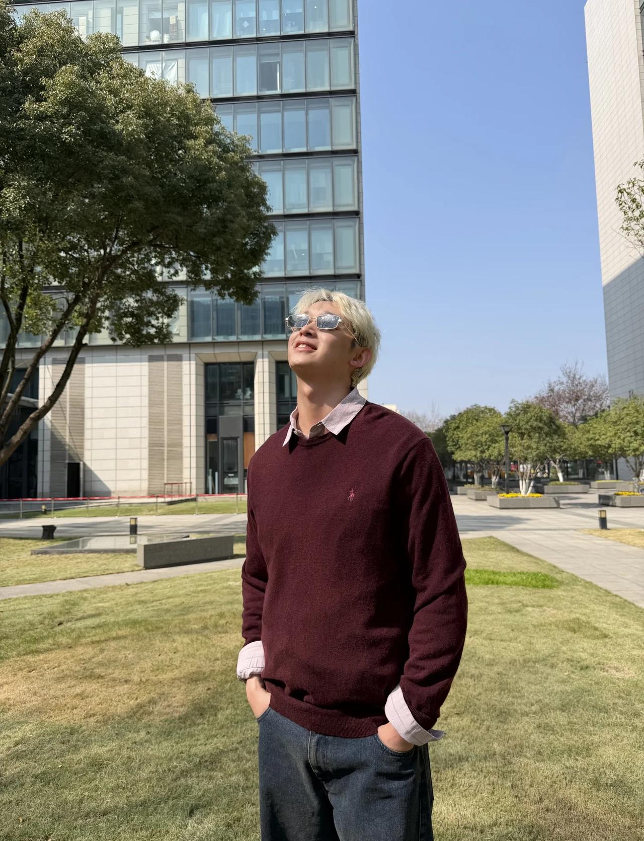 今天7-22度 我刚出单位大门 看到年轻后生穿短袖T恤 想起早上出门时 我丈夫穿