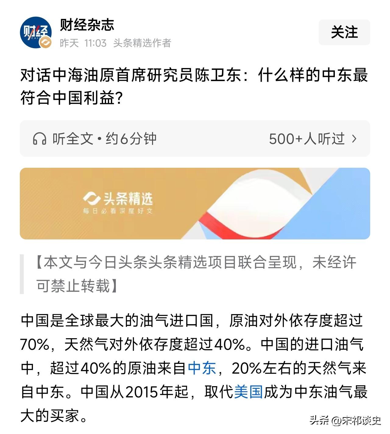 中东局势牵动能源命脉,从财经杂志那里了解到,作为中东最大油气买家,中国的能源安全与中东格局紧密相连,中海油原首席研究员陈卫东的对话,就为我们拆解了什么样的中东局面才符合中国的核心利益。 中国和美国在中东的角色差异十分明显,美国靠能源革命摆脱了对中东的依赖,全面参与当地事务,而中国即便经济和技术实力位居前列,在中东的政治、军事、文化和资本存在感却明显不足,这也让中东国家更希望中国只发挥经济作用,而非取代其他大国的存在。 想要保障自身利益,单纯依赖贸易远远不够,政治影响力、军事存在都是关键抓手,美国正将中东的公共产品变成商品,抬高交易成本,这给中国的能源安全带来了实实在在的风险,没有对应的影响力,就难以守住自己的经济利益。 面对不断变化的中东格局,中国的核心思路不是强行塑造格局,而是学会适应,针对当地的合作模式,还需要深化信任机制,同时放开能源领域的垄断,用更灵活的资本运作方式,才能在复杂的中东局势中,守护好自己的能源利益。