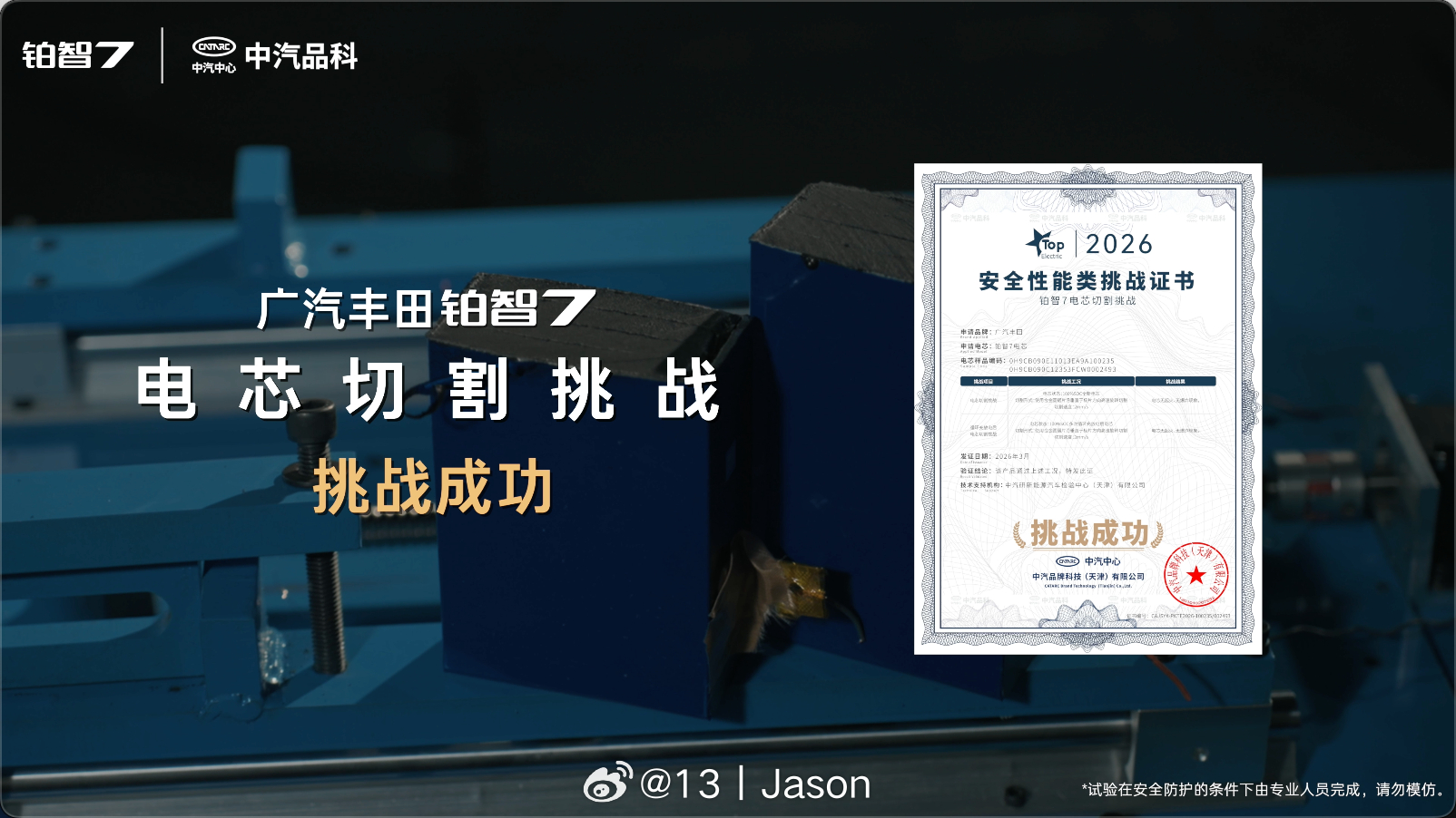 这一系列测试释放了什么信号?它将冰冷的参数直接「可视化」,让我们直观看到了铂智 7 的安全底线有多高。丰田铂智7电池扛住切泡冲撞极限测试