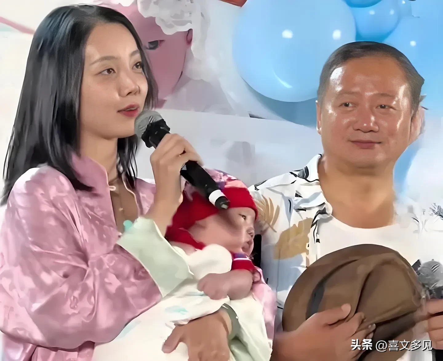 照片中,就是唐鉴军和小他30岁的娇妻,为他们的儿子办满月酒。瞧这一家三口,看起来像三代人。不过,从他们脸上的表情来看,都很幸福。