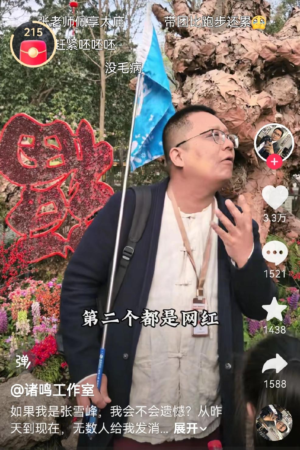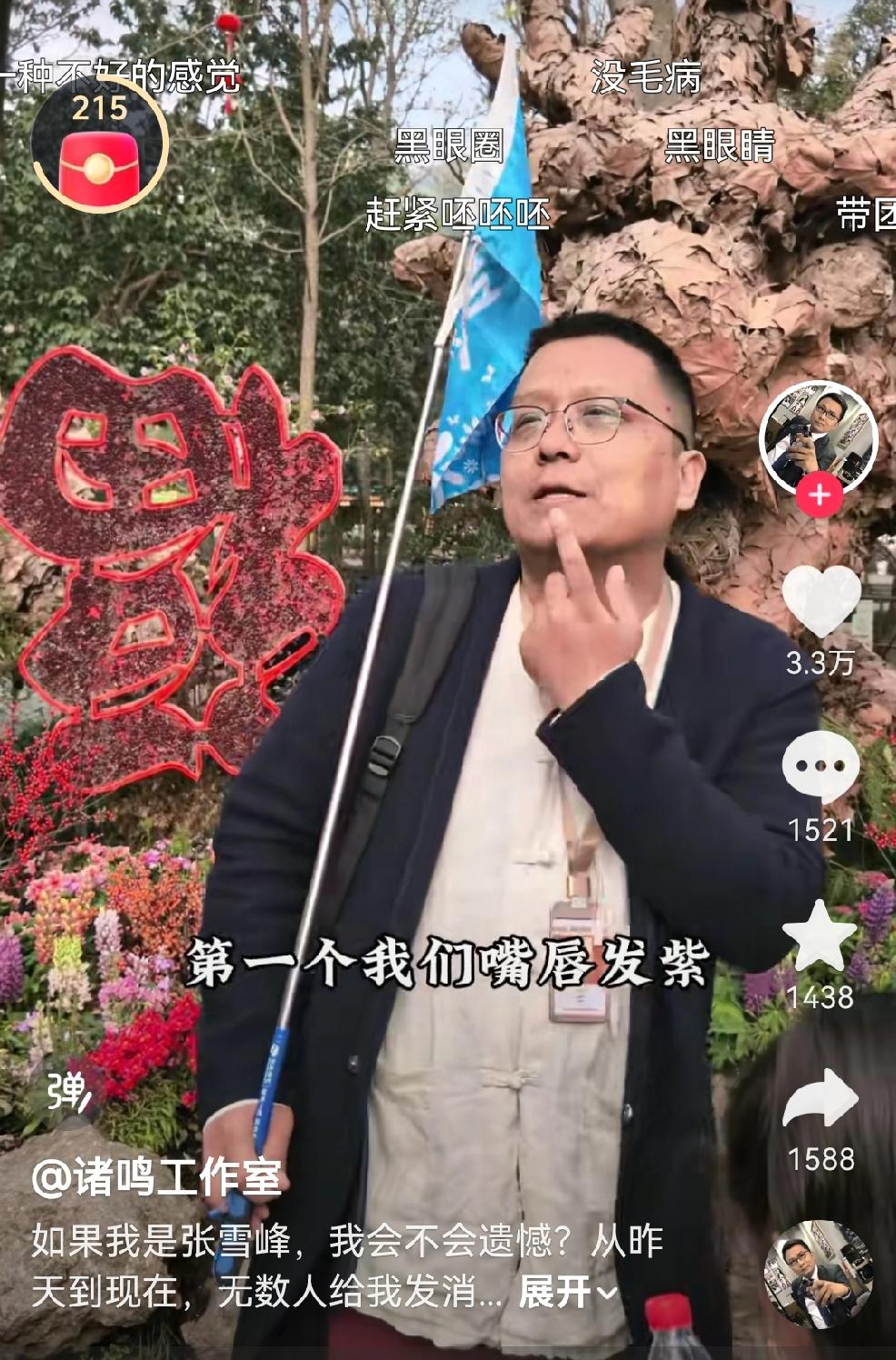 张雪峰老师骤然离世引起金牌导游小黑的警觉,他对比了一下,发现和张雪峰有许多共同点。一方面他们嘴唇都发紫,另一方面他们都是很有影响力的网红,还有他们都说过一些得罪人的话!其实还有一点,小黑诸鸣脸颊黑也是挺吓人的。 他觉得唯一让他感觉他的危险性小的就是他是员工,而张雪峰是老板!虽然赚的钱少许多,但是压力要小许多。虽然如此,他老婆看到张雪峰猝死,还是有许多担忧,劝他别干了!毕竟他们赚的钱也够他们花了!而且最让人羡慕的就是这家伙他儿子诸暨因为物理竞赛第一名保送上了北大物理系。这事有事没事拿出来吹,让人羡慕嫉妒。毕竟他儿子这种光宗耀祖的操作就算花钱也不一定能够做得到! 不过心理学家还是建议大家在公开场合不要乱说话特别是不好的话,有些话就是这样玄乎。心理学叫做避谶!