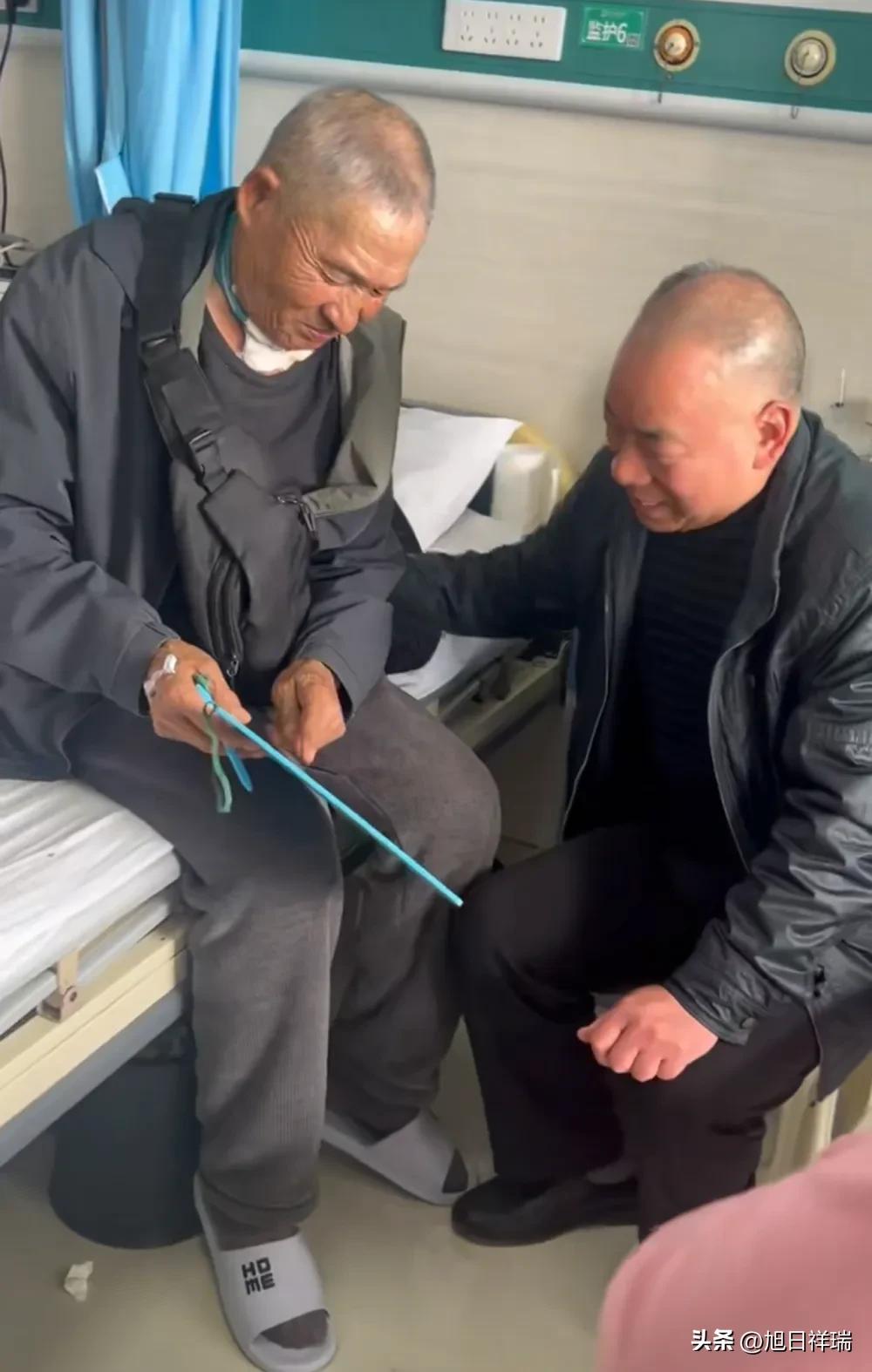 河南周口,71岁的父亲喉癌病重,已经不能说话、吃不下饭了。女儿瞒着他,悄悄把一位61岁的老人接到了医院。两个加起来132岁的老男人,见面就抱在一起,眼睛都红了。 事情是这样的。毛女士的父亲去年10月查出喉癌,手术后喉部全切,说不了话了。后来复发,越来越严重,呼吸都困难,医生跟她说,可能快不行了。 她爸这么多年总提起一个人,说当年在北京怎么认识的,说这个人怎么帮他。她记得,1993年那会儿,这位叔叔还专门搬了台电视机去她家,邀请她爸去学做胡辣汤。 后来因为一些原因匆匆分开,就再也没联系上。 她爸嘴上不说,但心里一直是个遗憾。 毛女生以前也找过,但是一直没找到。这次她想着,不能再给爸留遗憾了。她发了条求助帖,没成想真就碰上了。 多方打听后,她试着打了一通电话,对方说一般陌生电话不接,那天不知道为什么就接了。 她报了她爸的名字,大概情况说了说,那边一下子就激动了,没有任何质疑,第一句话是:我拿钱给你,给你爸治病。 她瞒着爸妈,把这位叔叔接到医院。 见面那一刻,她爸说不出话,就拿个写字板,一直写,一直写,恨不得把34年没说的话全写出来。 旁边的老友也红了眼眶,俩人握着彼此的手,半天没松开。 毛女士说,她爸生病后从来没见过他笑,那天见到老朋友,整个人都变了,动作都变轻盈了。 临走的时候,她爸依依不舍,非要让女儿给他们拍张合影。 俩人握着手,久久不放。 我想人这辈子,能有一个惦记34年、一个电话就来了,第一反应是拿钱治病。 最后还能见上一面的朋友,值了。 你们有没有这样一个老朋友,好久没联系了,但偶尔还是会想起?
