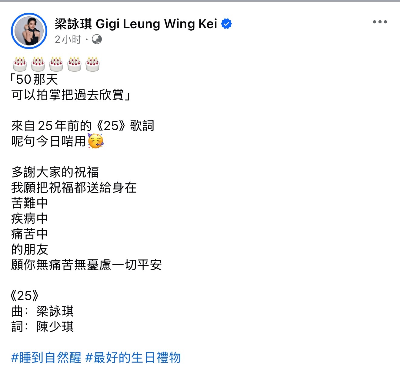 梁咏琪生日快乐!!完全想不到GiGi已经50岁了,在我心中她还是少女。