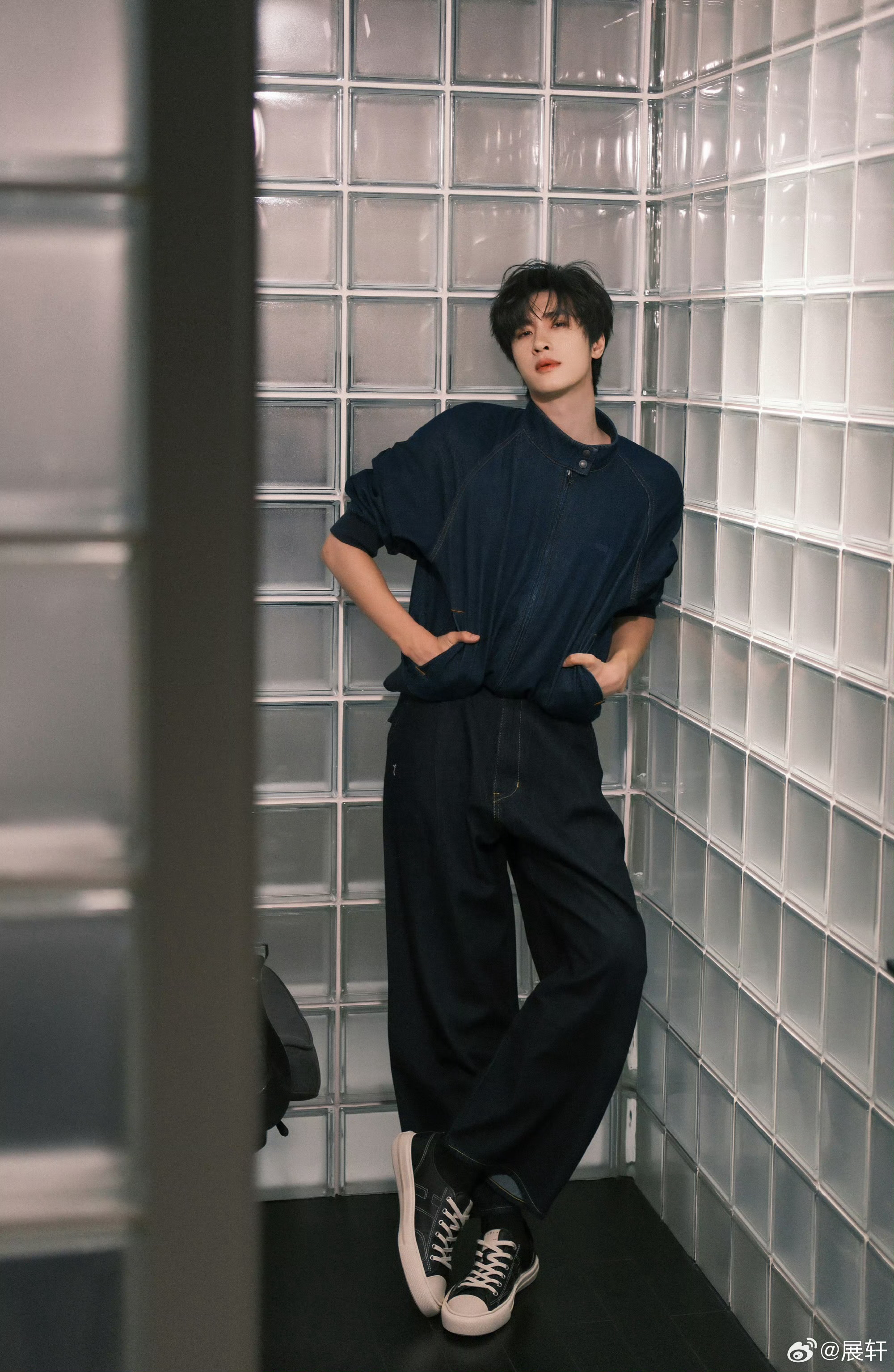 展轩室内牛仔大片展轩最新营业🈶全牛仔look休闲松弛好长条一个人对镜整理完全